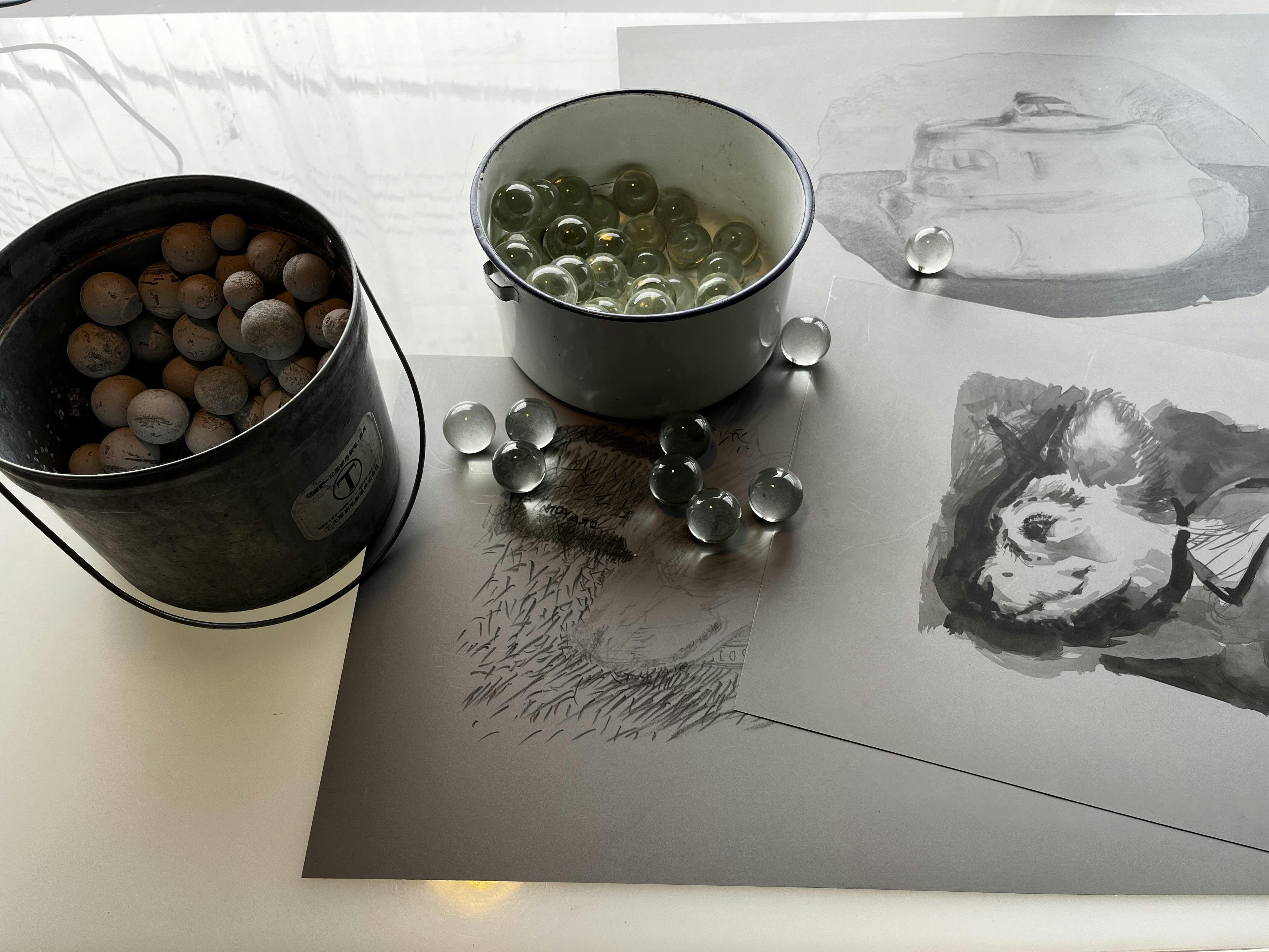 これがリトグラフの原理ですが、満足のいくように刷るには版の加工に様々な材料や薬品が必要です。これらのリトグラフ制作に必要な物品(版画を刷るためのプレス機〜絵を描くためのクレヨンに至るまで)がどんどん手に入りにくくなっているのです。