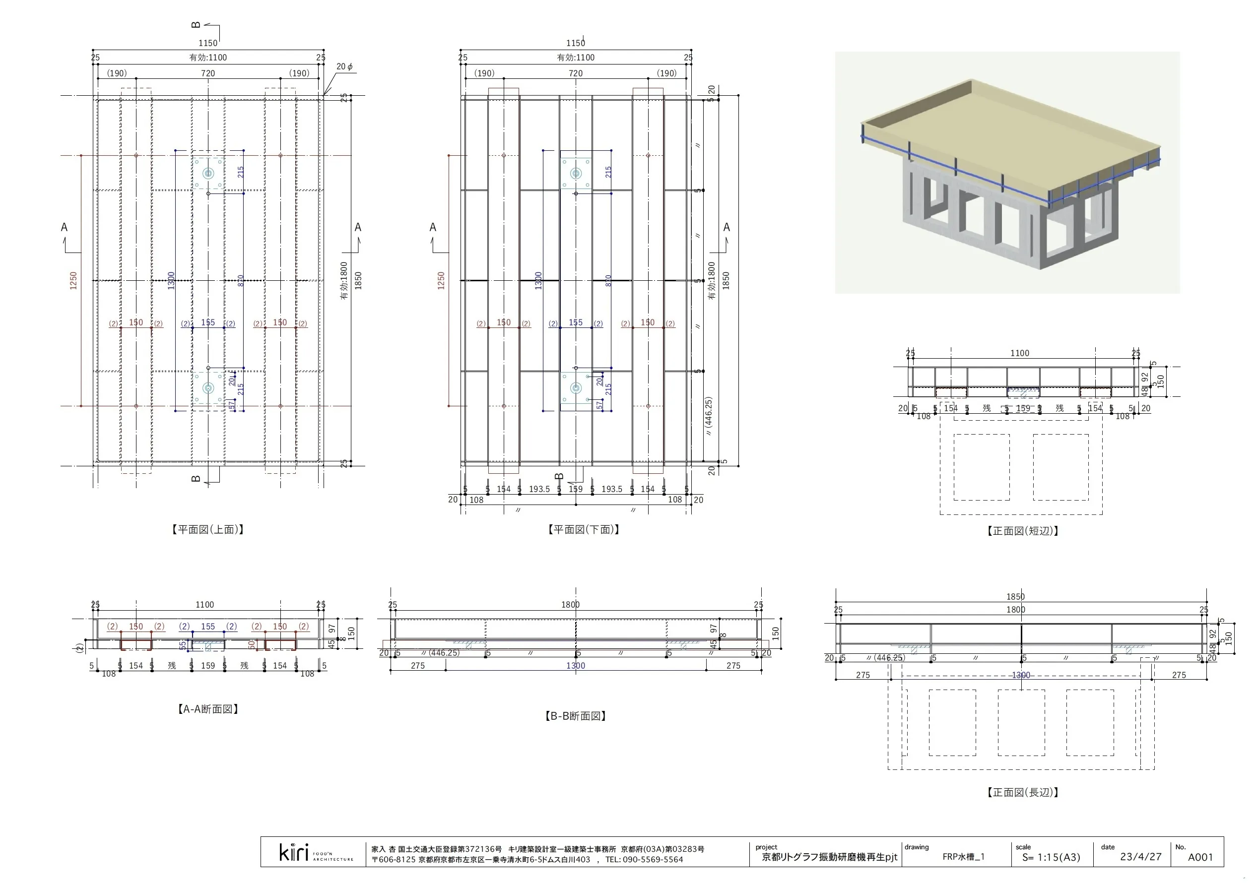 クラウドファンディングで救おうとしている機械は、今まで救ってきた機械たちと比べても台数が少なく、動かなくなったものを含め日本中を探しても、数台しか見つからないと思います。現在工房にある機械もなくなった研磨所から引き取って時間が経ってしまい朽ちた部品などを外して今はほとんどスケルトン状態です。そこで、工房の設計者でもある建築家の助けも借りて新材料も使う予定です。この図面で色をつけている部分にアルミの板を敷き、末尾の写真の中に版と一緒に写り込んでいるガラス球と、研磨剤を載せてゆすり、アルミ板の表面に傷をつけていくという機械なのです。