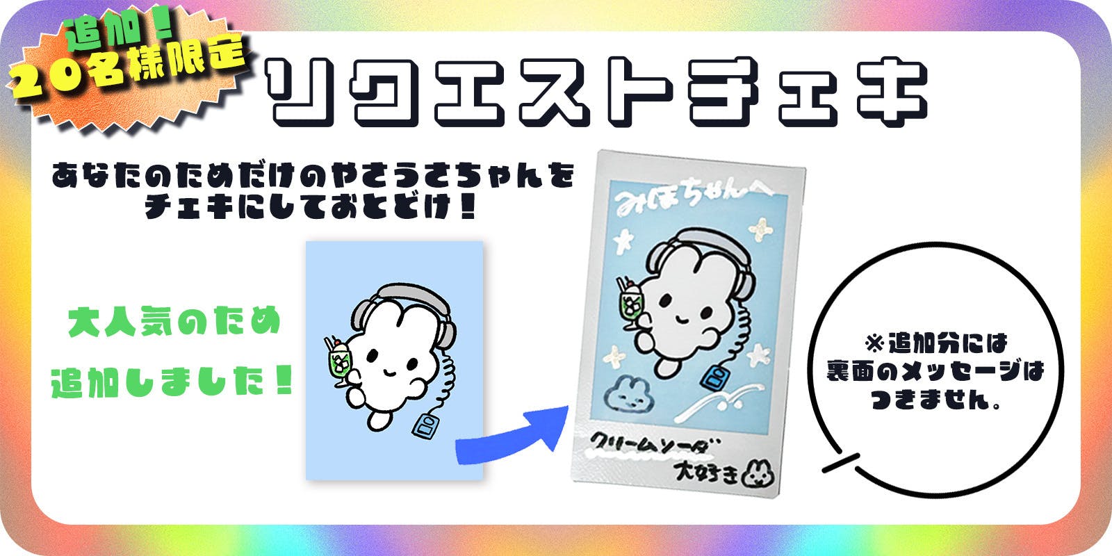 ※追加分のリクエストチェキには裏面のやさうさちゃんからのメッセージはつきません。ご了承ください。