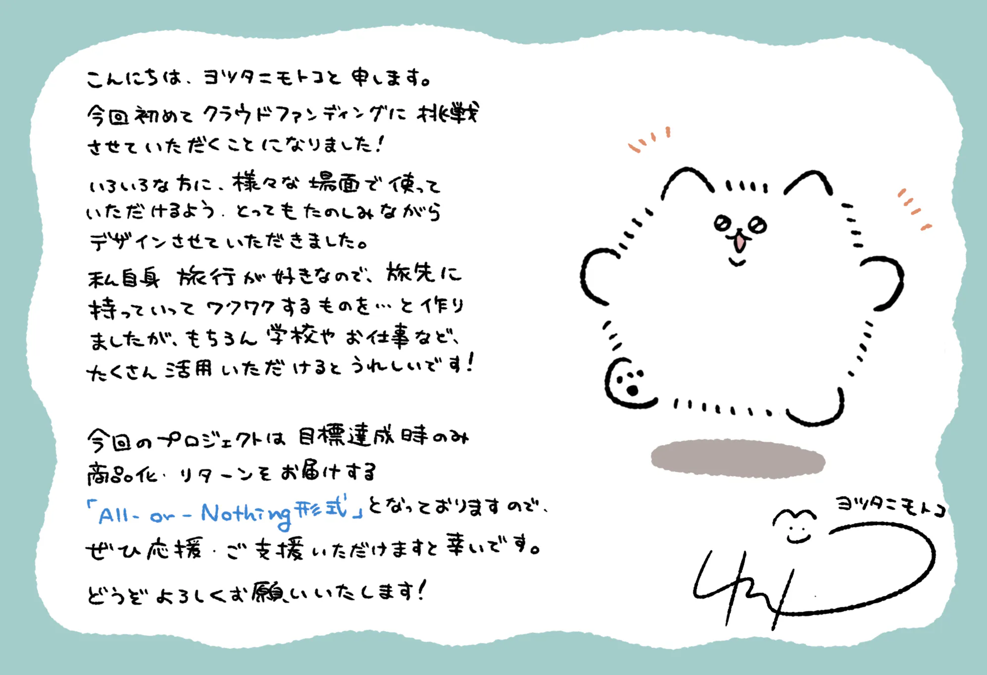 本プロジェクトはAll-or-Nothing方式で実施します。目標金額に満たない場合リターンのお届けはございません。未達成となった場合、支援額は全額返金されます。