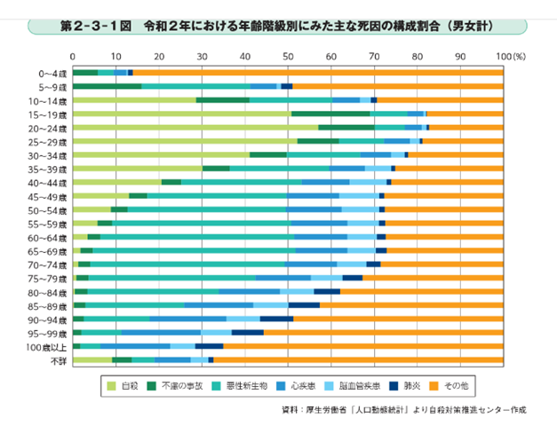 これは、厚生労働省「人口動態統計」より自殺対策推進センターが作成した資料ですが、若年層では死因の第1位を占めるのが自殺であることが見て取れます。10代から30代の方にカウンセリングが必要なことは確かです。しかし、カウンセリング料金は高額で、なかなか支払うのは難しいです。