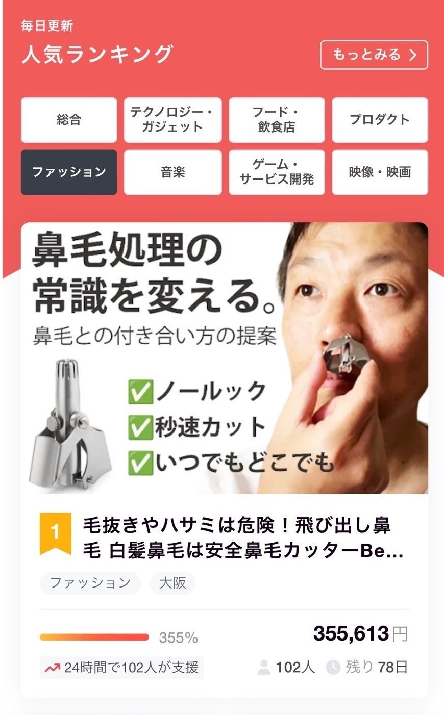 先日CAMPFIREのデイリーランキング1位を取得する事が出来ておりました。