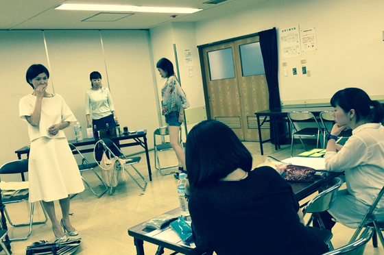 日々、稽古をしています! 演出の米内山陽子 演出助手のkinoko が真剣な眼差しで、 高橋恭子、田中千佳子、中村貴子の演技をチェックしています。