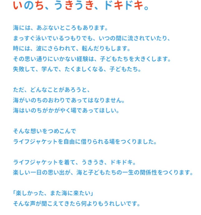 みなさまの寄付金で、全国の海水浴場にライフジャケットレンタルステーションを設置しよう!