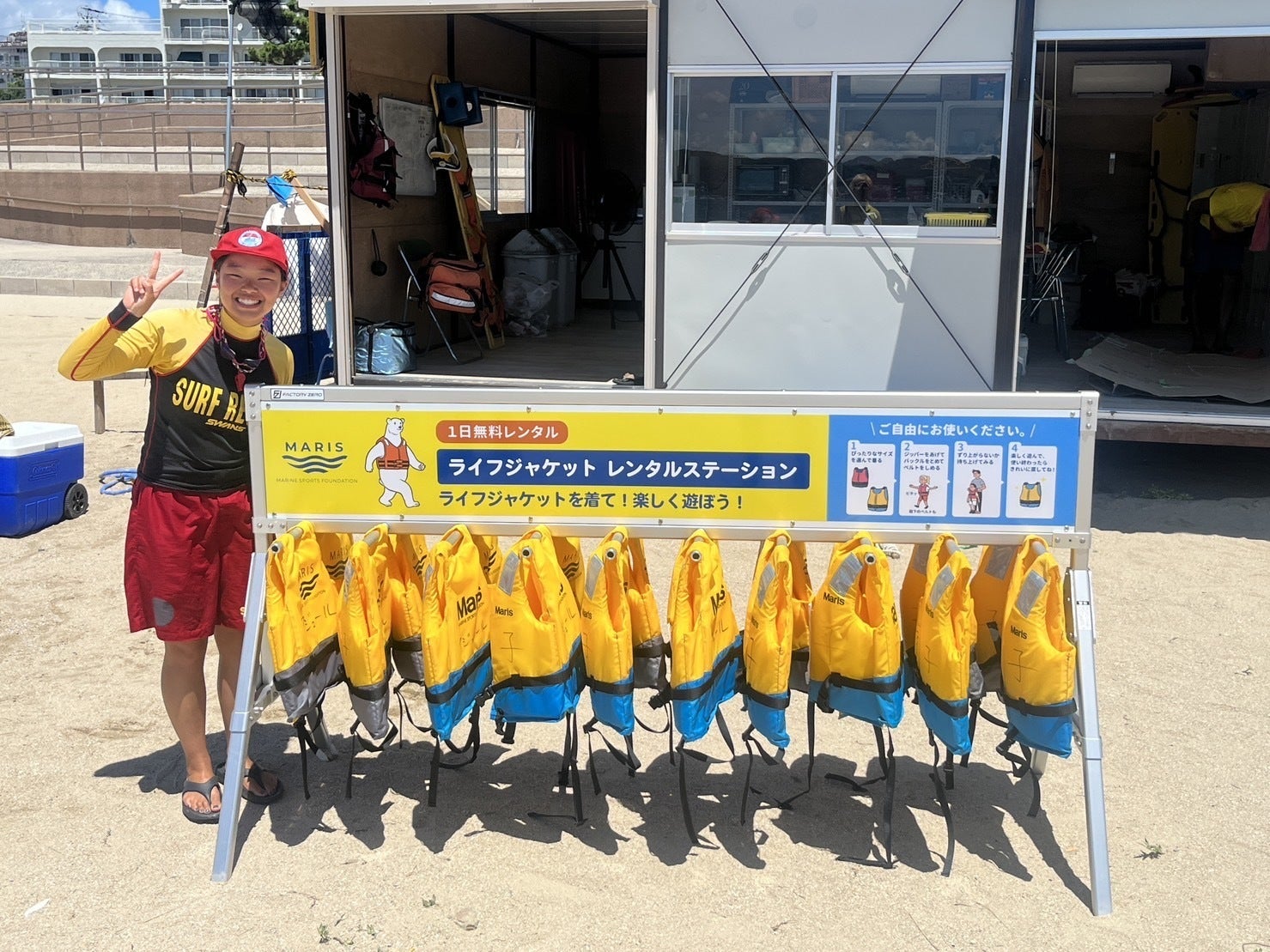 このうち、神戸市垂水区のアジュール舞子海水浴場では、ことしは7月11日からステーションが設置され、子ども用のライフジャケット20着が貸し出されています。