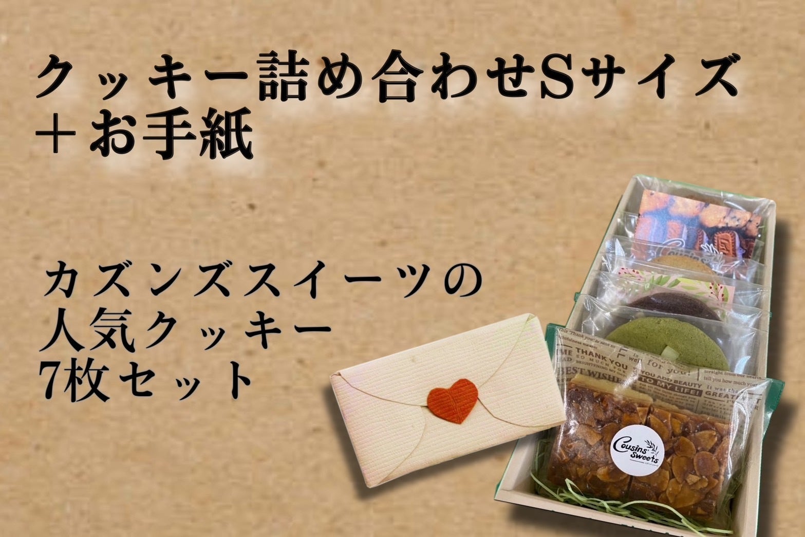 カズンズスイーツの人気クッキー7枚(小麦ベース)に、手書きのお手紙を添えて配送致します。