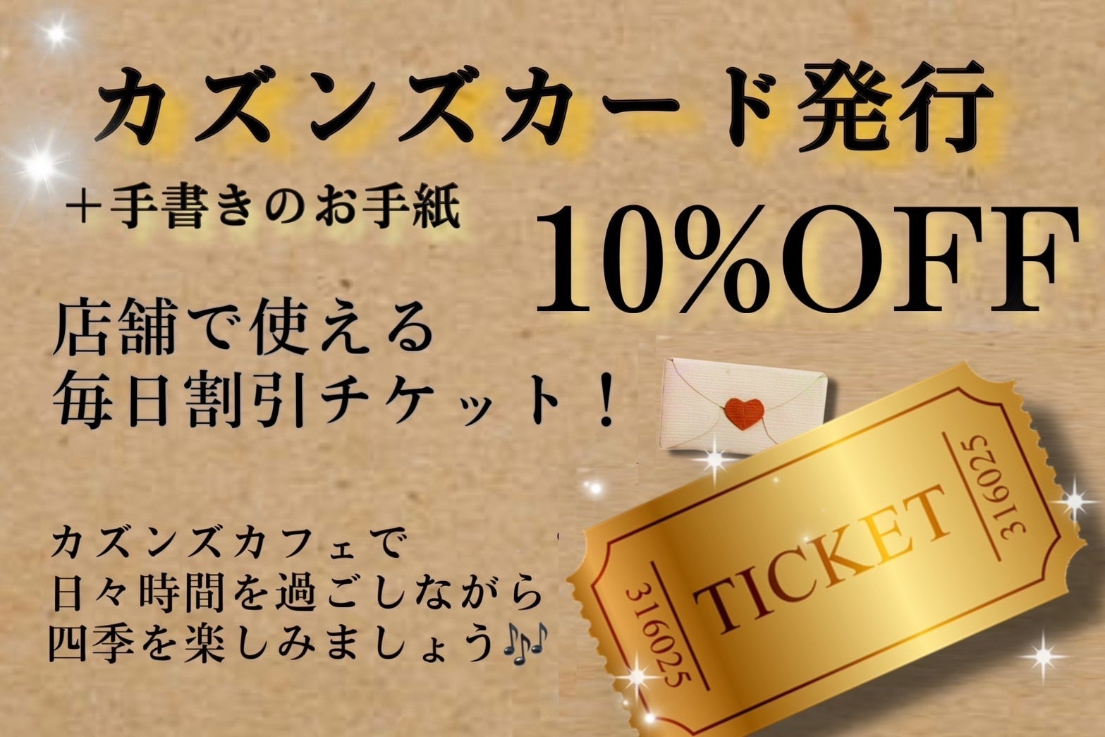 オープンから1年間、毎日使える10%OFFのカード(限定3名様)を発行致します。