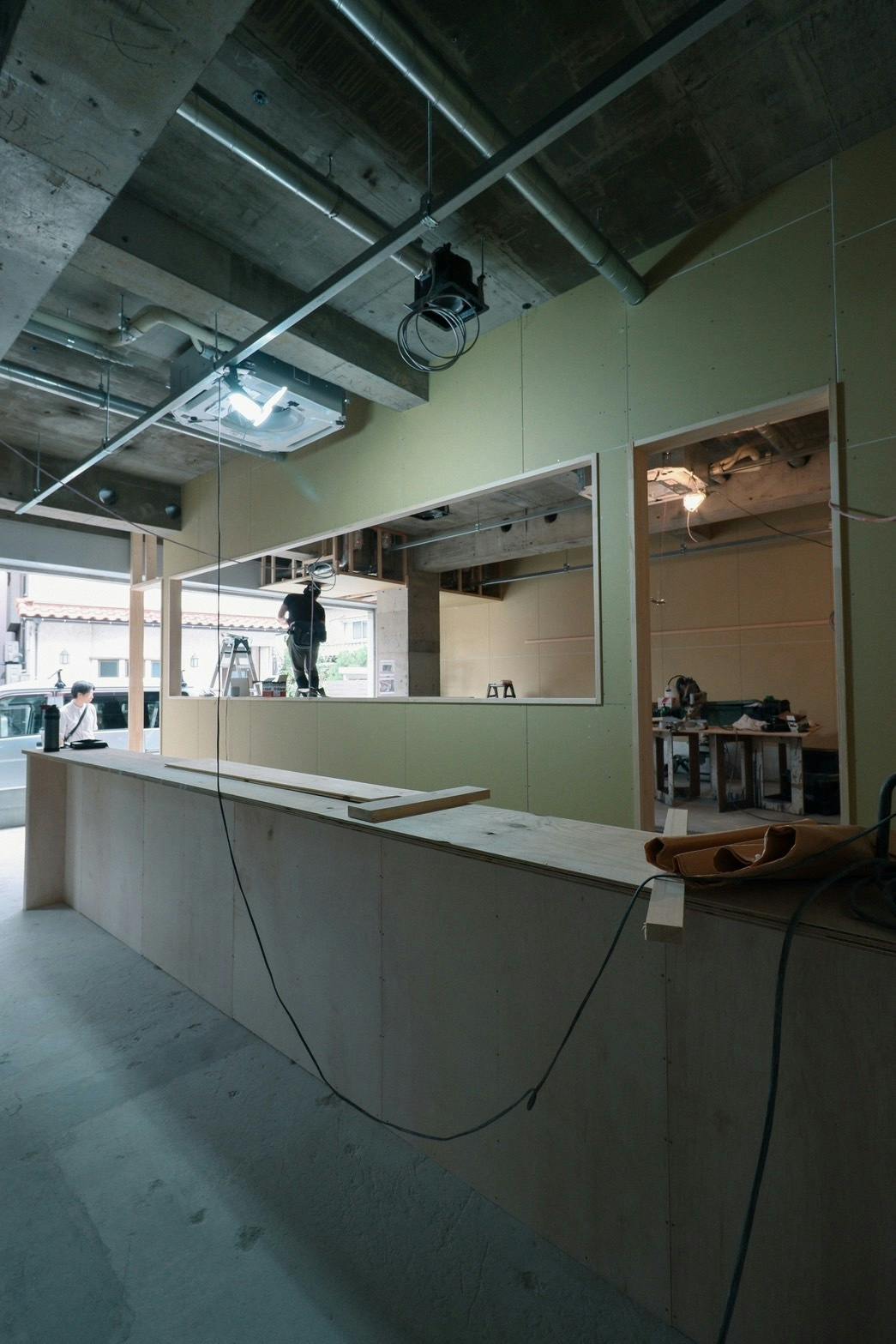 手前がカウンターで、その奥が工場です。
