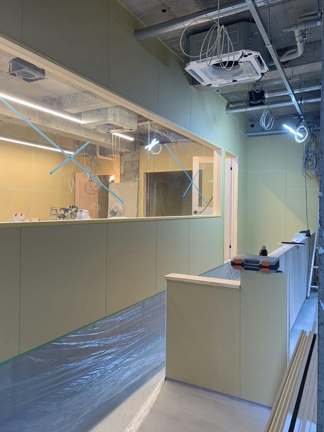 大きなガラスが取り付けられたり、ドアや照明がついたりと益々お店らしくなってきました。