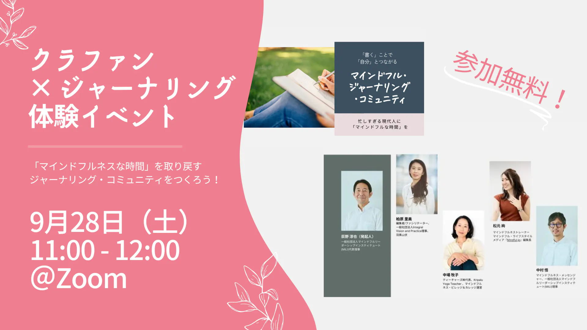 イベントでは、クラウドファンディングプロジェクトの詳細をご紹介し、後半には「書く瞑想」としてのジャーナリングを実際に体験していただきます。