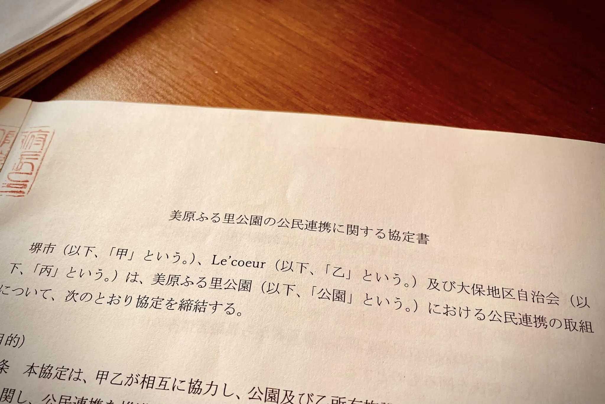 2023年、堺市と合同会社Le'coeurと大保地区自治会とで「美原ふる里公園の公民連携に関する協定書」を締結
