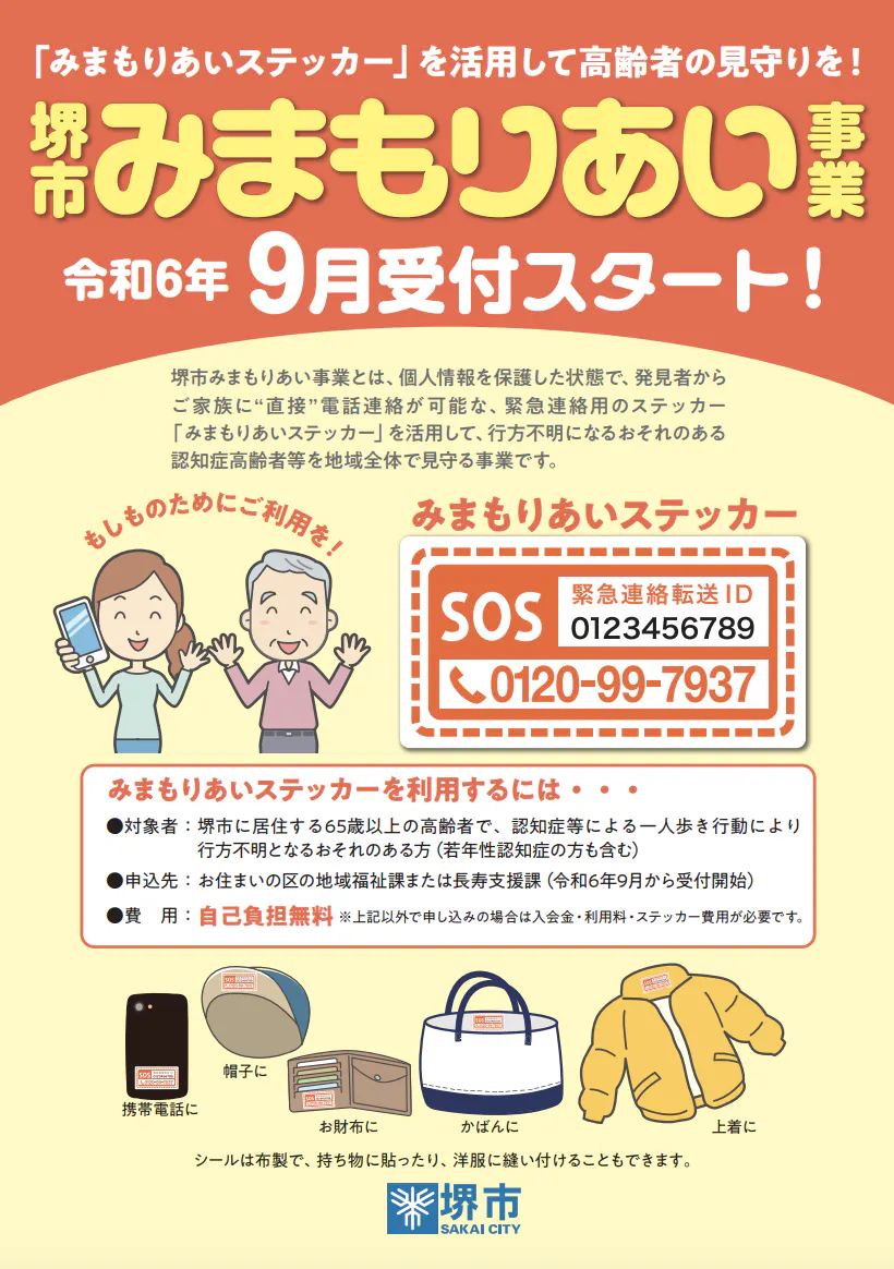 2024年7月30日の堺市長記者会見にて、9月2日から「堺市みまもりあい事業」がスタートすることが伝えられました。(若年性)認知症などで行方不明となるおそれのある方などを、地域で繋がりを作りながらみんなで守っていくための取り組みです。
