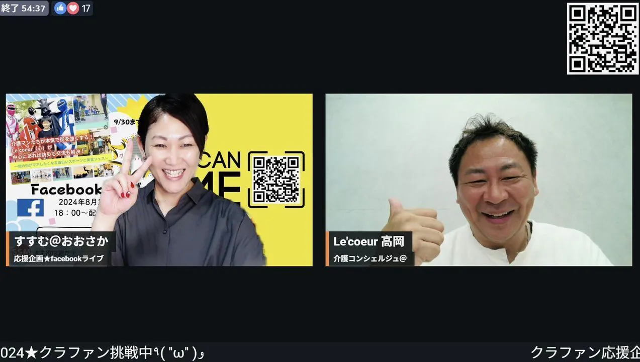 2024/08/28 10:29こんにちは!高岡です!14名のあなたからのご支援、「お気に入り登録14名」、SNSや対面でのクチコミをしてくださり、本当にありがとうございます!クラウドファンディングの応援でこんなLIVE配信作ってくれた♡めちゃくちゃ嬉しいです!本日8/28 18時からFacebookコラボライブをさせていただきます!「スポーツでまちづくりしたい!福祉・防災に強いまちづくりを応援したい!参加したい!」という想いのあなたとのご縁をいただけると嬉しいです!LIVE配信イベント主催者: 進 絵美さんただただ応援したくてfacebookライブ配信٩( ''ω'' )و【イベントURL】https://www.facebook.com/events/475240775395406/?ref=newsfeed2024.11.2(土)堺市美原区「美原ふる里公園」でイベント開催(''ω'')ノ〒587-0001大阪府堺市美原区大保27『みはら歴史博物館』すぐ北そのためのクラファン挑戦中!https://camp-fire.jp/projects/782883/view高岡さんをゲストにお招きしての配信です('◇')ゞ#高岡珈琲#デイサービス#ルクール#egaoプロジェクト今までしたかった地域や仲間と創る「まちづくり」その中で福祉防災を中心に置きつつ普段から人が集まる居場所づくりその場所を知るために開催するイベントを通じて『その場所を知る』そんな事を実現する1つとして今回スポーツを主軸に子ども達や親子連れ、地域や仲間たちが集う【ルクールフェス2024】通称:ルクフェスやります#ルクールフェス2024 #まちづくり#福祉防災 #居場所づくりーーーーーーーーーーーーーーーーーーーーーーーーーー今回のクラファンで苦戦すること必至無謀ながら【目標金額200万円】を設定しました。調達した資金は下記の内容で使用します!① 会場使用料および会場設備費② 各スポーツ設備などに係る費用③ 宣伝用チラシ作成・配布費用④ その他イベント開催にかかる費用スポーツ関連の費用が予想以上にかかることからクラウドファンディングを行うことにしました。準備期間が少ないためクラウドファンディングを始めながらイベントを作り上げるっていう超難易度の高い挑戦。。。。皆さん力貸してください!#クラウドファンディング#クラファンでまちづくり#スポーツイベント----------------------------------------------------------今回のイベントはこれから毎年続けていけたらいいなと思っています。メインが防災イベントではなく楽しく「遊ぶ」を体感して気がつけば防災のことを学んでた遊びの中で学ぶそんなイベントづくりをしたいと本気で思っています。今決まっているイベントでいうと①スポーツ系イベント元『かくれんぼ』日本代表現『鬼ごっこ』日本代表の岡村尚美さん企画の【宝探しゲーム】今話題の大会で300人を集める【ミニらいとモルック】子ども達と一緒に【ダンスパフォーマンス】②マルシェ出店者は調整中ですが7月よりLe'coeurで開催している「毎月第1土曜日」に開催の『みはらんどフェス』これを11月にはギュッと集めて開催!③ 飲食ブース(キッチンカーなど)当日は高岡珈琲のシュークリームやサンドイッチに加え「バサラのアジト」とコラボのハンバーガー★キッチンカーは出店者募集&調整中★★★介護マン★★★コチラはどんな参加になるかお楽しみに!まだこれからドンドン詰めていきます。去年8月に開催したルクフェスからグレードアップして『ルクフェス2024』やっちゃいますので応援してくださいーーーーーーーーーーーーーーーーーーーーーーーーーーーー【運営サポート】してくれる人も募集してます①当日の運営スタッフ②写真や動画撮影③救護スタッフ(医師・看護師)少しづつお声がけいただいておりますがまだまだ募集中です!#運営スタッフ募集ーーーーーーーーーーーーーーーーーーーーーーーーーーーー#Facebookライブ#クラファン#ルクールフェス2024【イベントURL】https://www.facebook.com/events/475240775395406/?ref=newsfeed もっと見る
