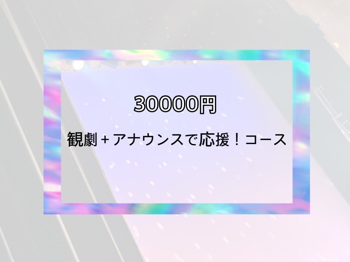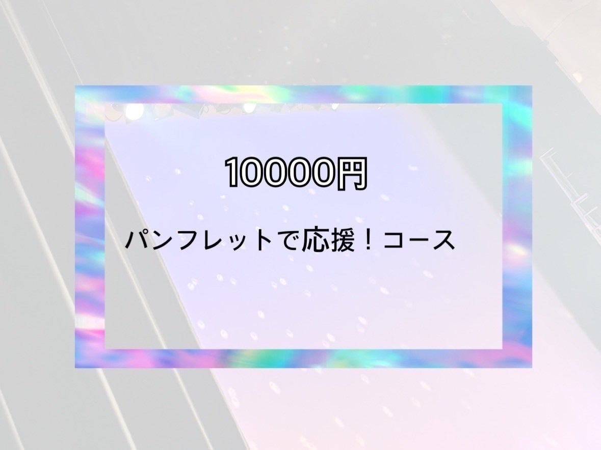 チケット1枚、パンフレットにお名前記載(会社名も可)、当日の写真、お礼メッセージ