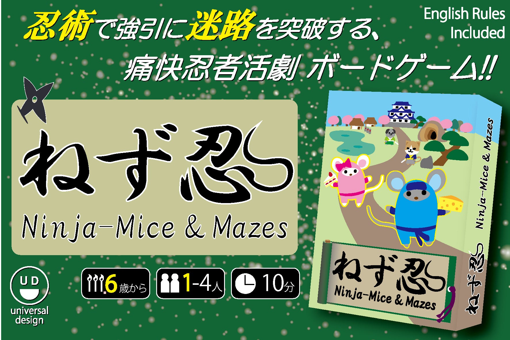 さてこの度、新たな家族向けボードゲーム【ねず忍】を作りました。2枚のカードでランダムに作られる迷路を、忍術を使って攻略するゲーム性です。