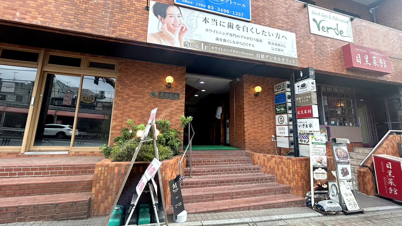 「スナック&ミュージック・クラブ Aruji」は、目黒駅から徒歩7分の権之助坂の中腹にあります。同じビルの1Fには目黒の人気町中華「目黒菜館」があり、昼でも夜でも活気ある雰囲気。