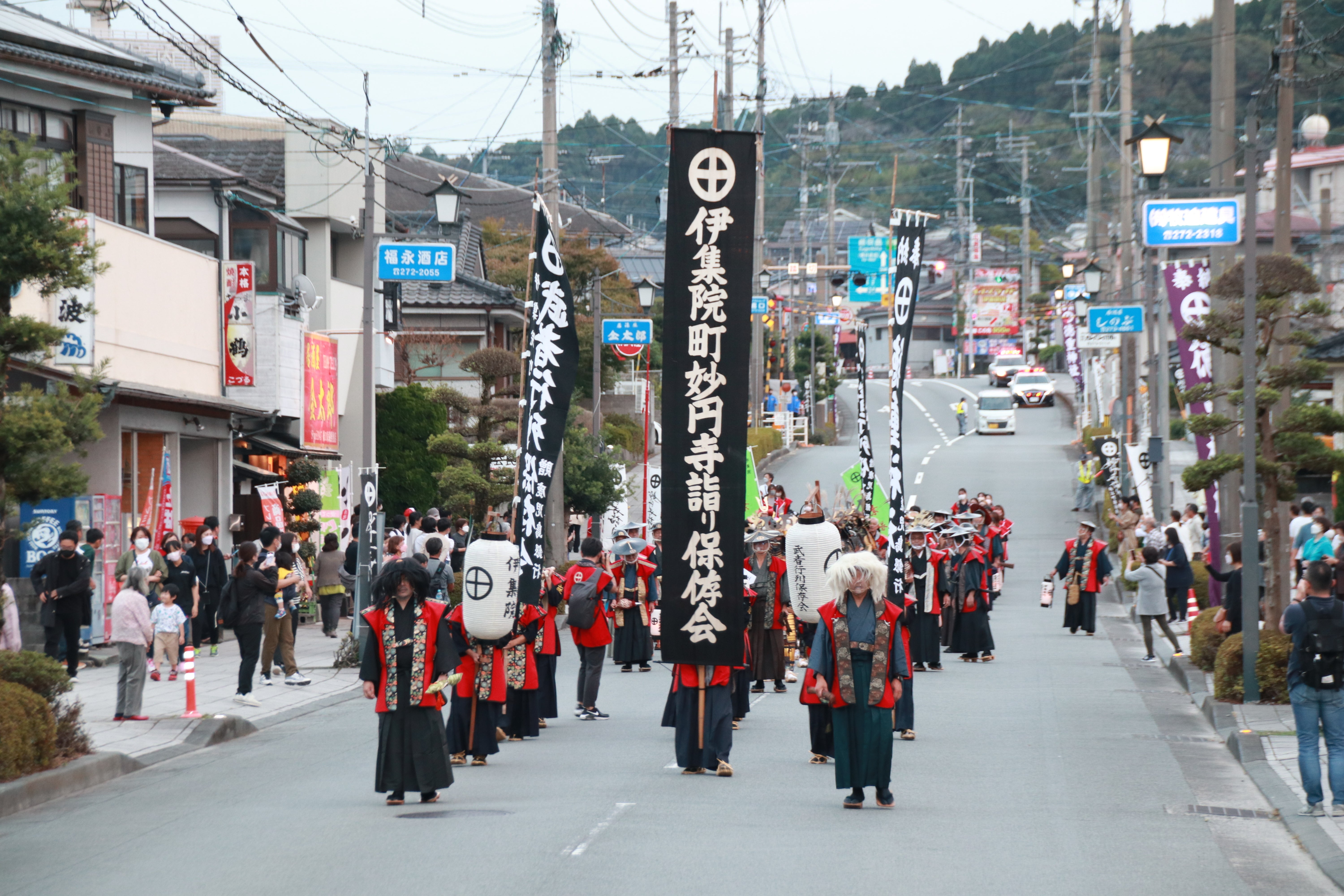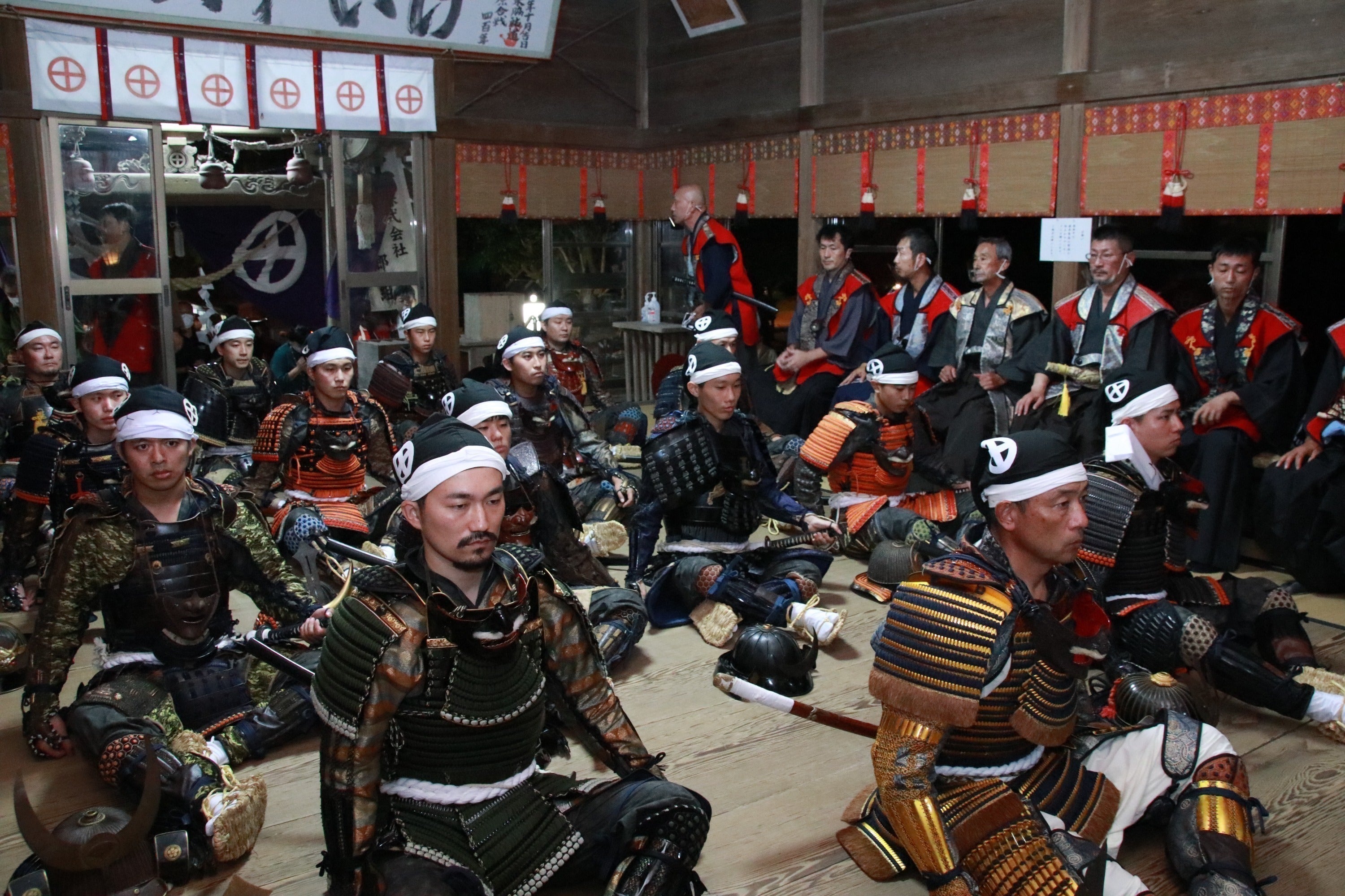 この行事は、その間の言語に絶する艱難辛苦(かんなんしんく)のあとをしのび、その剛勇を慕って、いつからかともなく鹿児島城下の武士たちが関ケ原合戦の前夜にあたる旧暦9月14日、鹿児島・伊集院間往復40キロを甲冑に身を固め、夜を徹して今の徳重神社に参拝したことに始まる行事です。