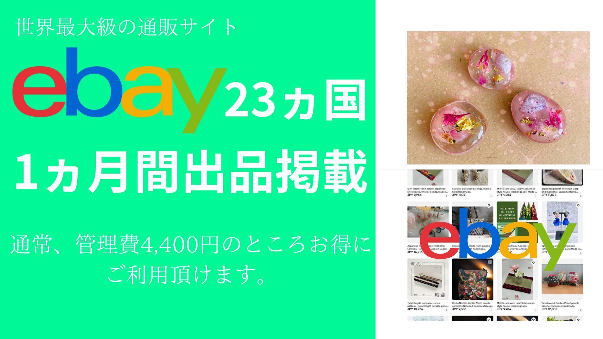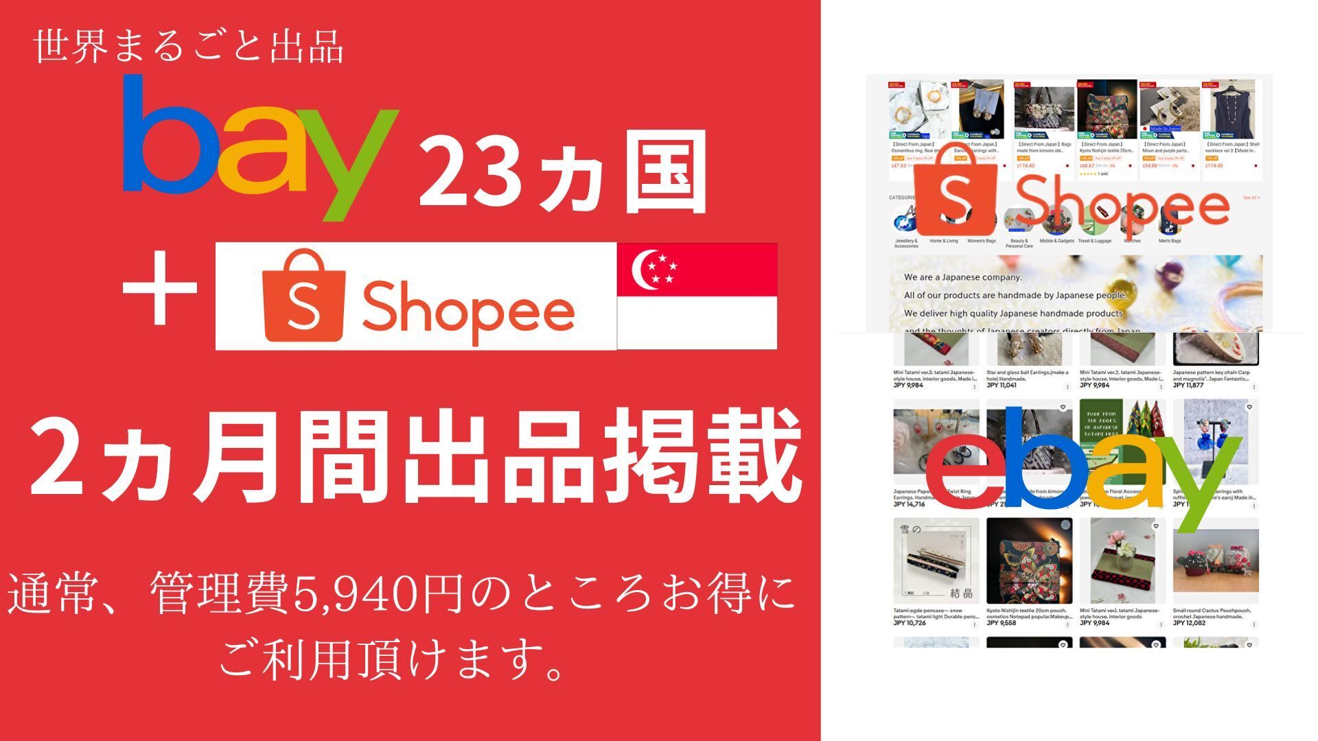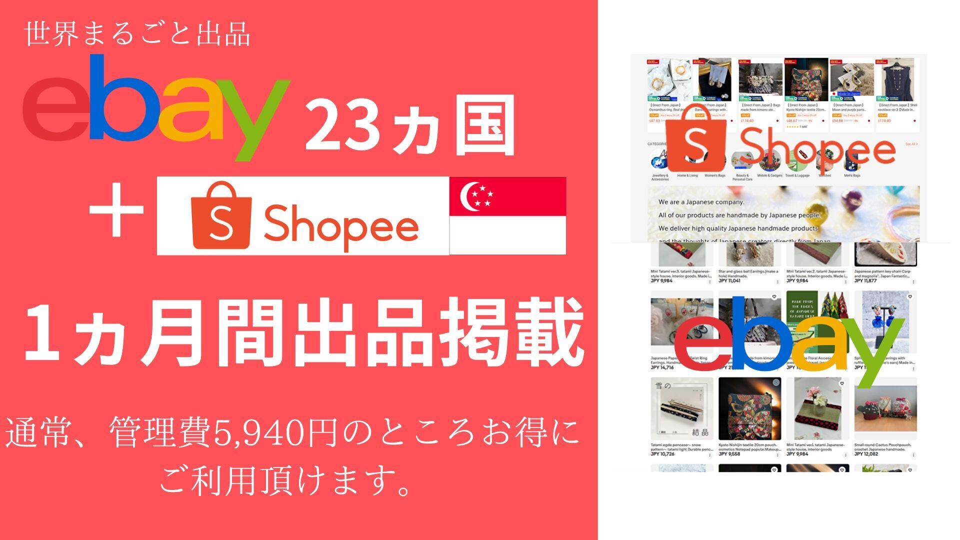現在、既にアジア最大級のショッピングサイトShopeeSingaporeへ30名以上の作家様の作品を100品以上出品し売上も少しずつ上がってきており、更に世界最大級の通販サイトebayにて23ヵ国に向けても同時に出品しており、いつでも販売促進となる広告を出せる状況です。
