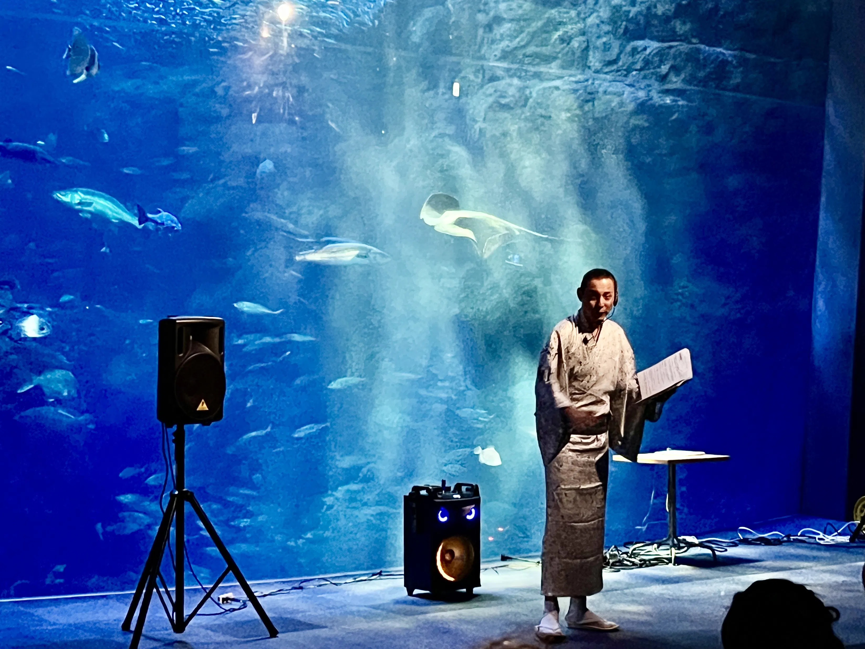 ただ、ご来場いただいた方達からは「素敵なイベントだった」「夜の水族館での出嶌さんの演奏がとても幻想的だった」「長﨑さんの声と水槽の魚たちがステキだった」などと、嬉しい感想を頂戴しました。