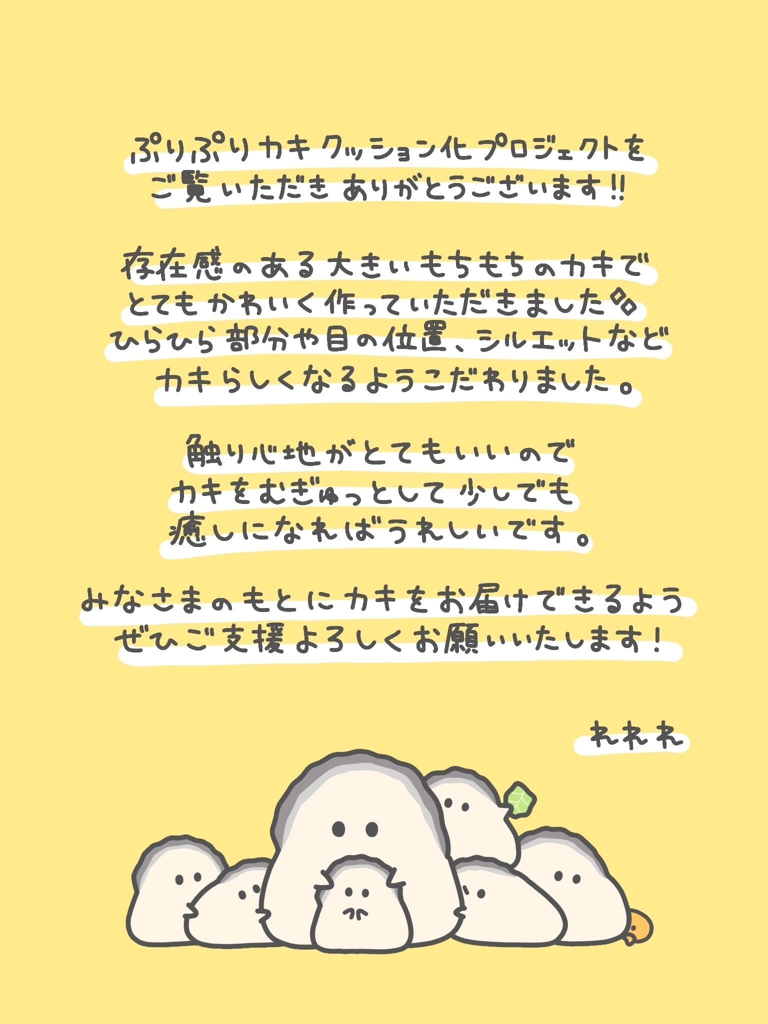 イラストレーターれれれの人気キャラクター「ぷりぷりカキ」がクッション化に挑戦します!