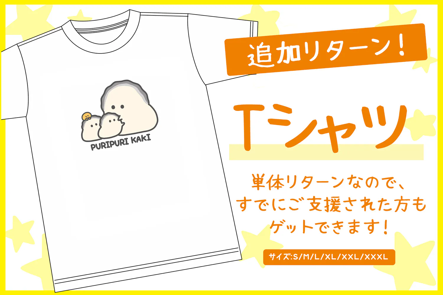 2024/08/30 17:00【追加リターンを設定しました!】追加リターンは、「PURIPURI KAKI」Tシャツです!おっきカキやピンノちゃんも一緒のデザインとなっております!すでにご支援された方も購入できますので、この機会にぜひゲットしてくださいね♪さらに!【ストレッチゴールを設定しました!】\\\ ぷりぷりカキのお友達大集合///220%達成で支援者様「全員」にA4サイズのクラウドファンディング限定クリアファイルをプレゼントします!Tシャツプランと他のプランを支援された方はストレッチゴール達成後はクリアファイル2枚のプレゼントになります。すでにご支援くださった方も、是非ゲットしていただけますと嬉しいです♪引き続き応援お願いします! もっと見る