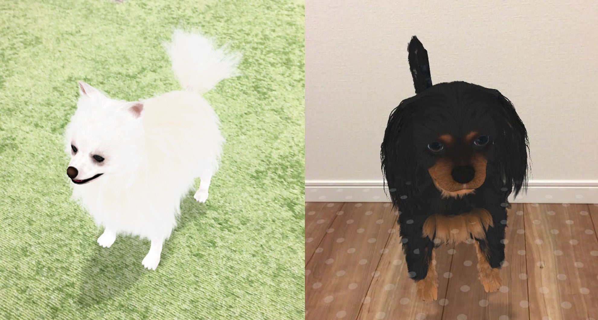 飼い主の方から提供いただいた写真を基に2種類の犬(ポメラニアン・キャバリア)を作成しました。また、この3Dモデルを前述のARアプリに登場させ、簡単な動作を行うことができます。