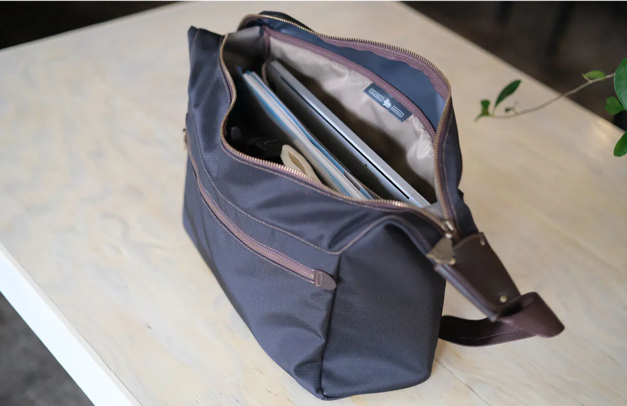 UPLAポストマンバッグは、重いものを入れるとより体にフィットするように計算されて作られています。