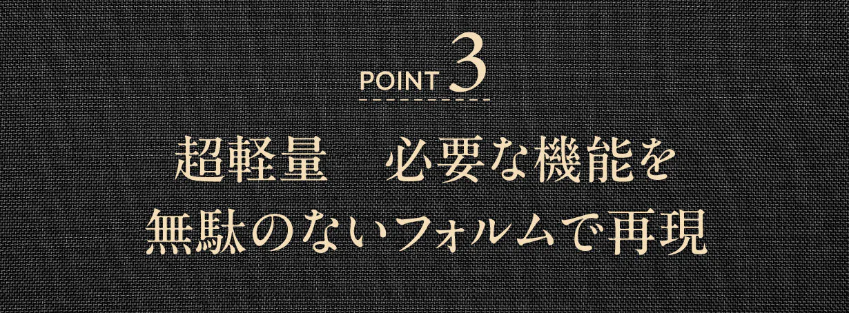 無駄なポケットや収納部分を省くことで重量570gという軽さを実現しました。