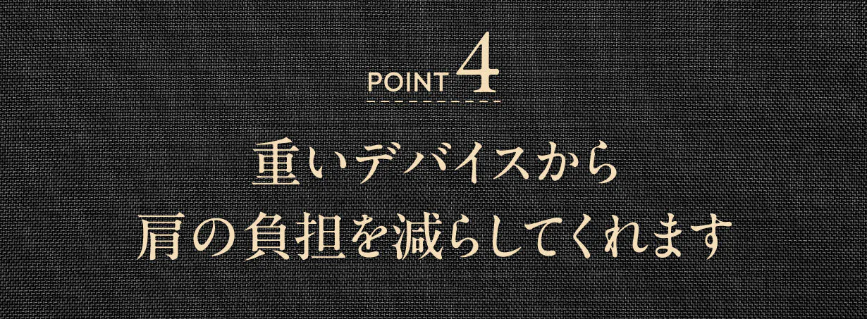 ボリューム満点のヘリンボン織を幅広タイプにすることで重さを分散して肩の負担を減らしてくれます。