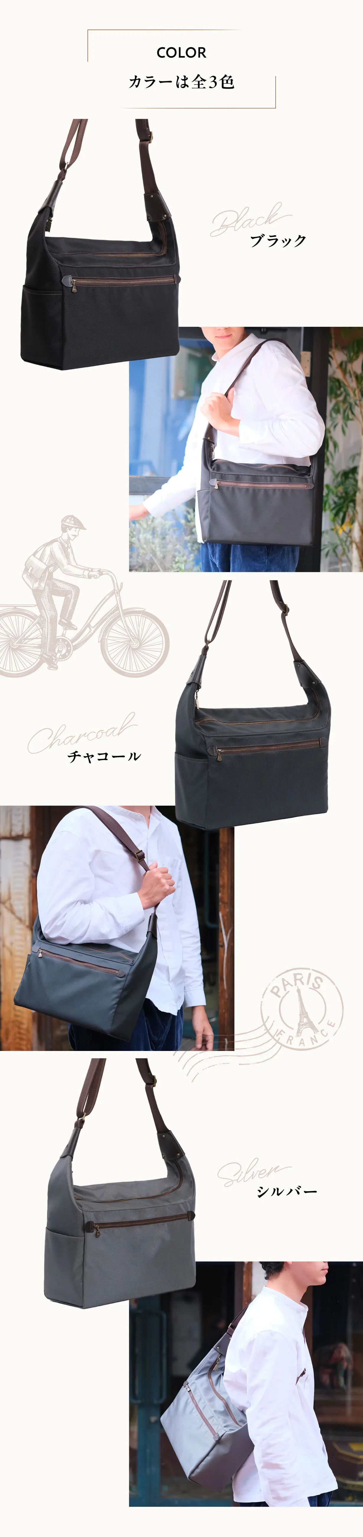 ●歩いているときは肩掛け/自転車の時は斜め掛けで