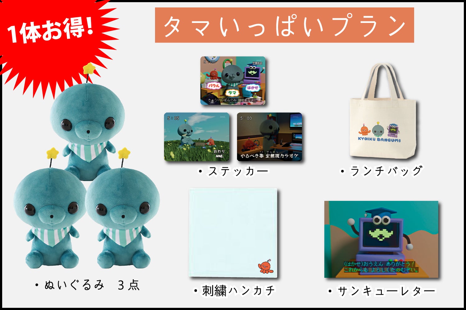 【30名様限定!】3体のタマぬいぐるみが届くプラン!