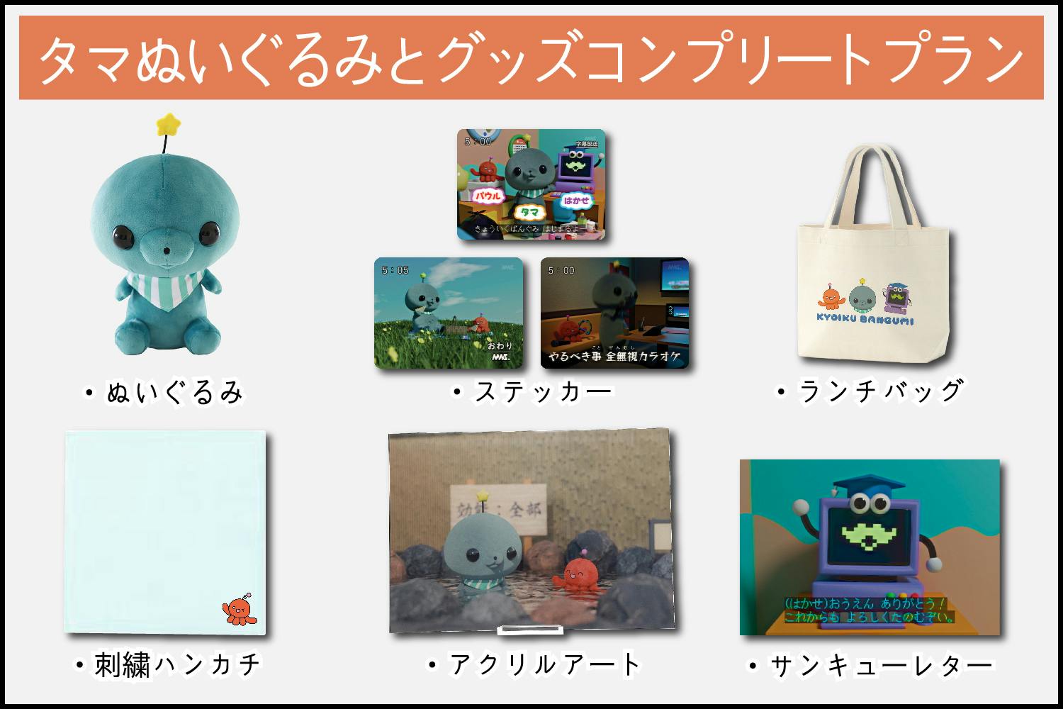 ▲ぬいぐるみとグッズプランです!(アクリルアートは含まれません)