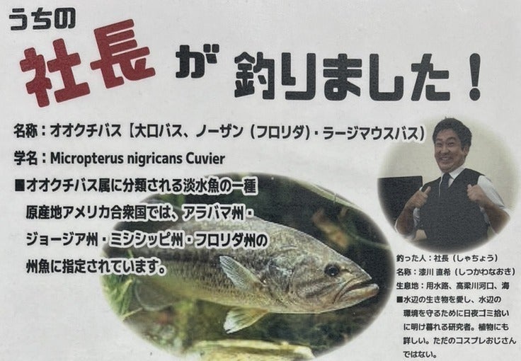 現在は岡山県倉敷市で子ども向けの習い事教室を運営しており、そのスクール内でオオクチバスを1匹飼育しています。