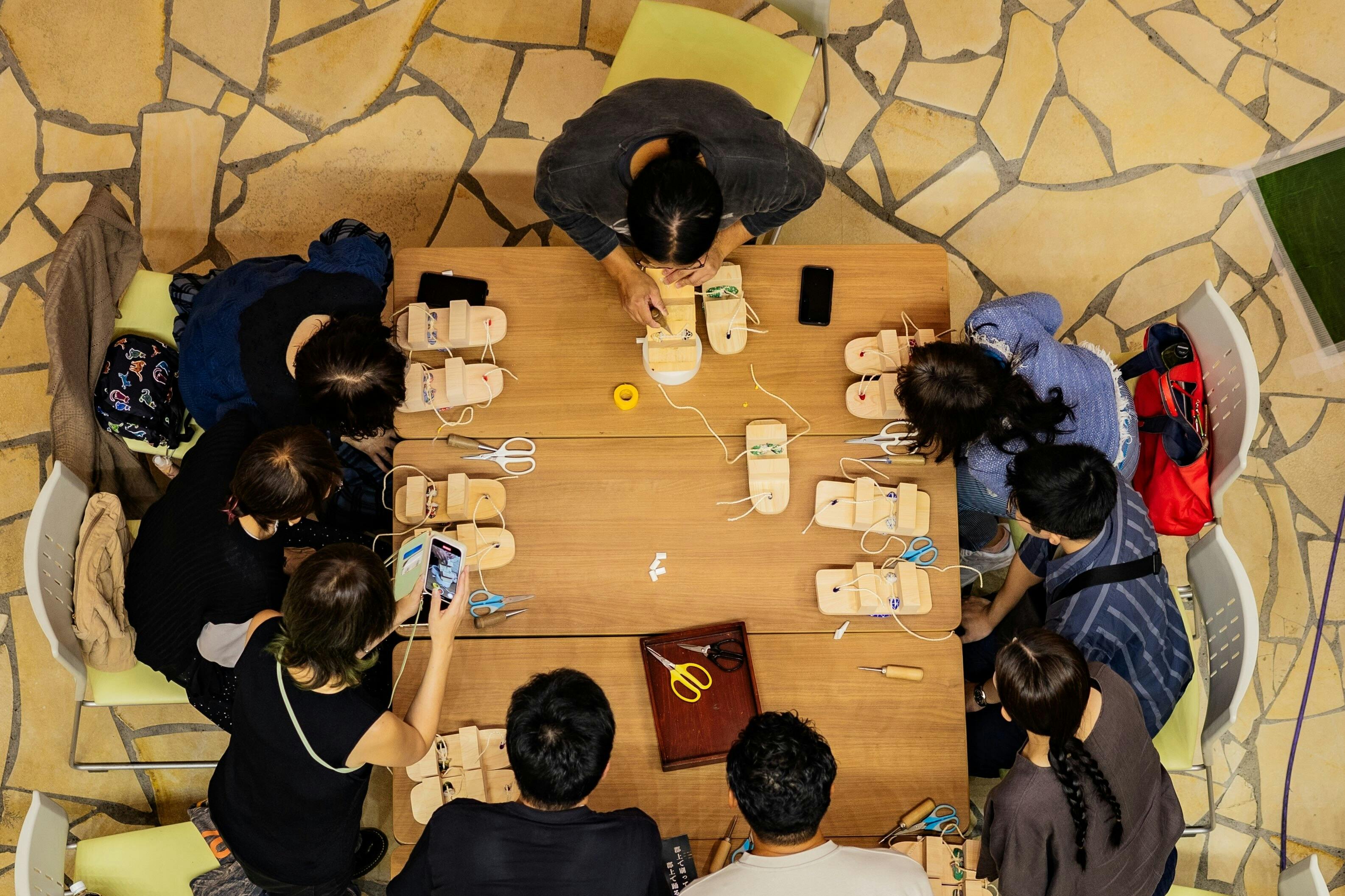 イベント会場で行う、踊り下駄づくりのワークショプです。キャンプファイヤーで先行して参加者を募集いたします。