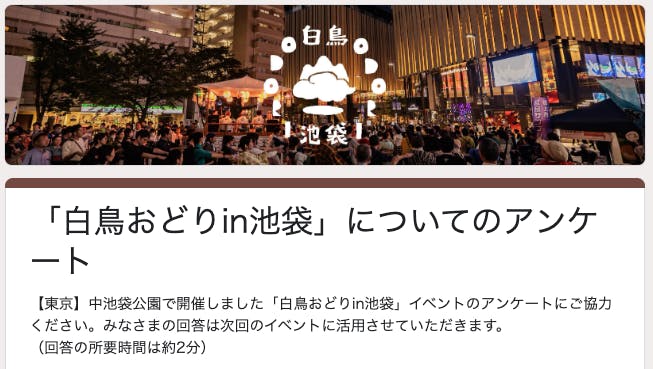 白鳥おどりin池袋ご来場の皆様へ/アンケートご協力依頼