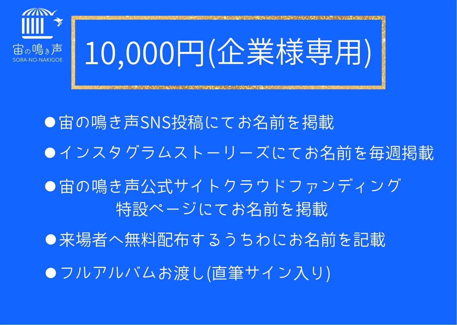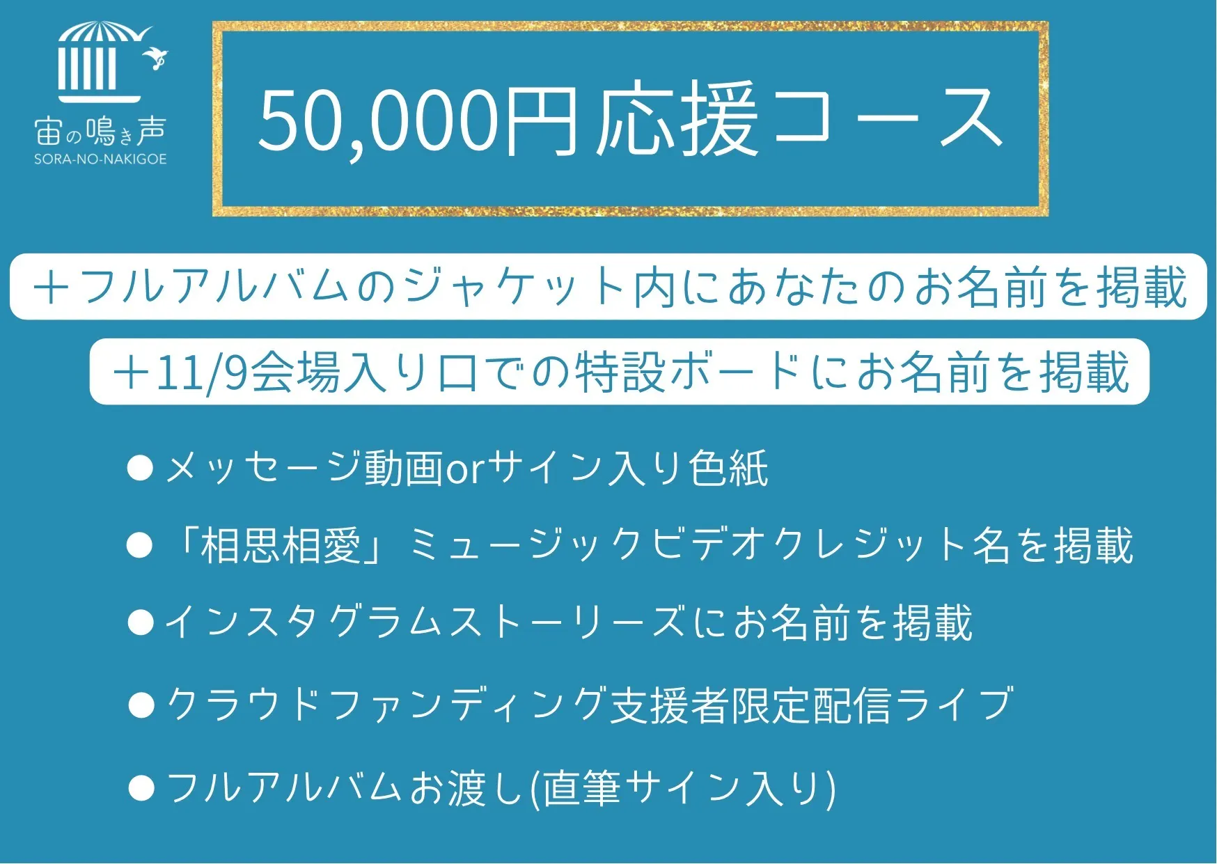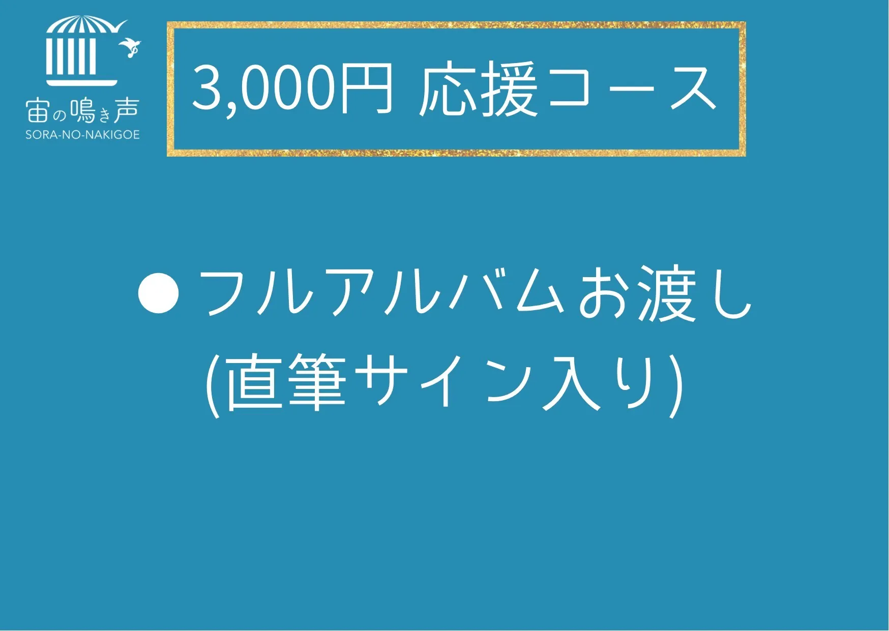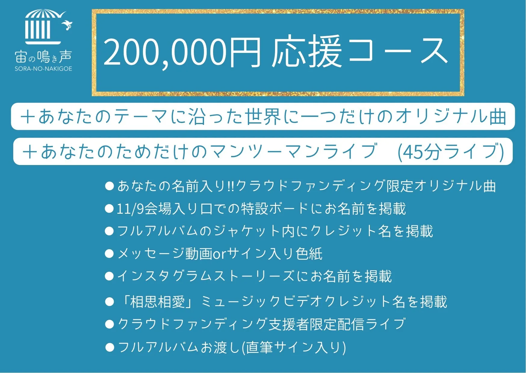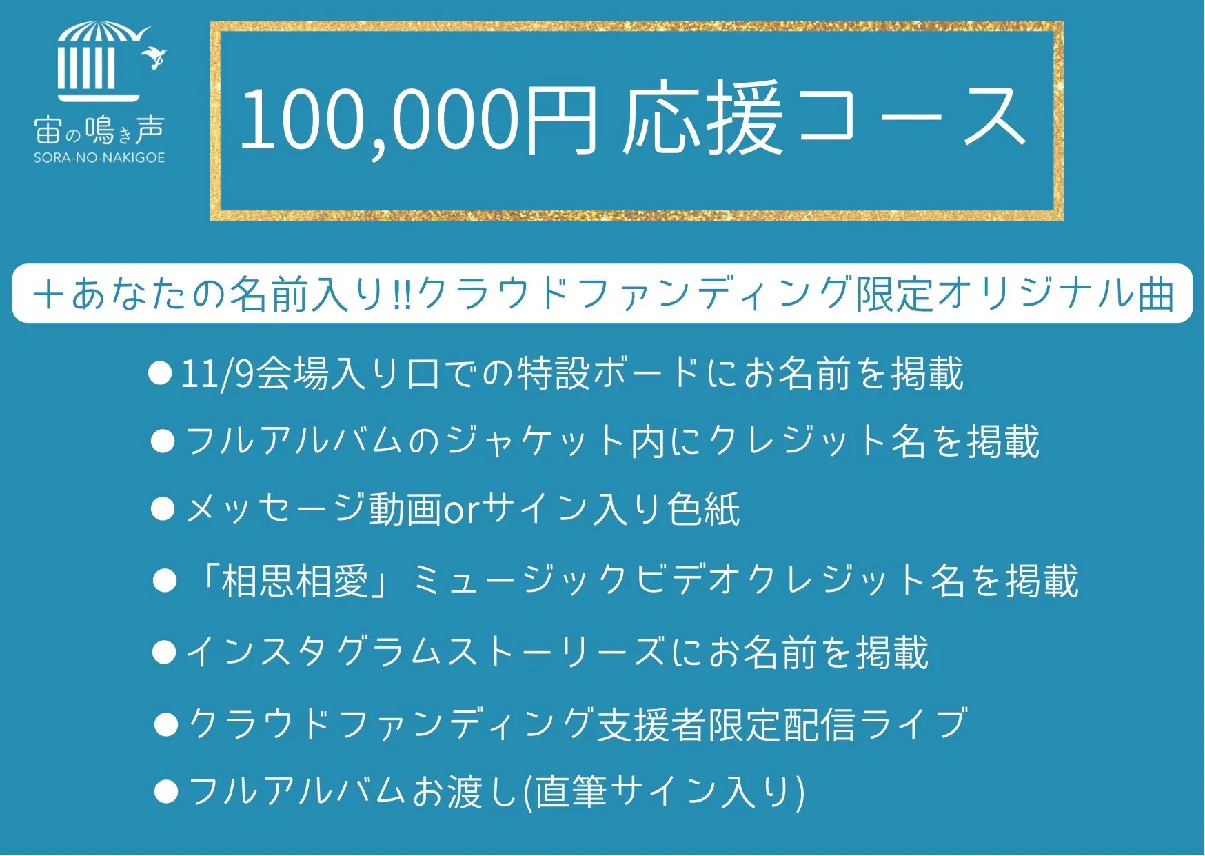 (クラウドファンディング限定オリジナル曲、もしくは、宙の鳴き声の既存の楽曲からお好きな曲をお選びいただき、あなたのお名前を記載します。)