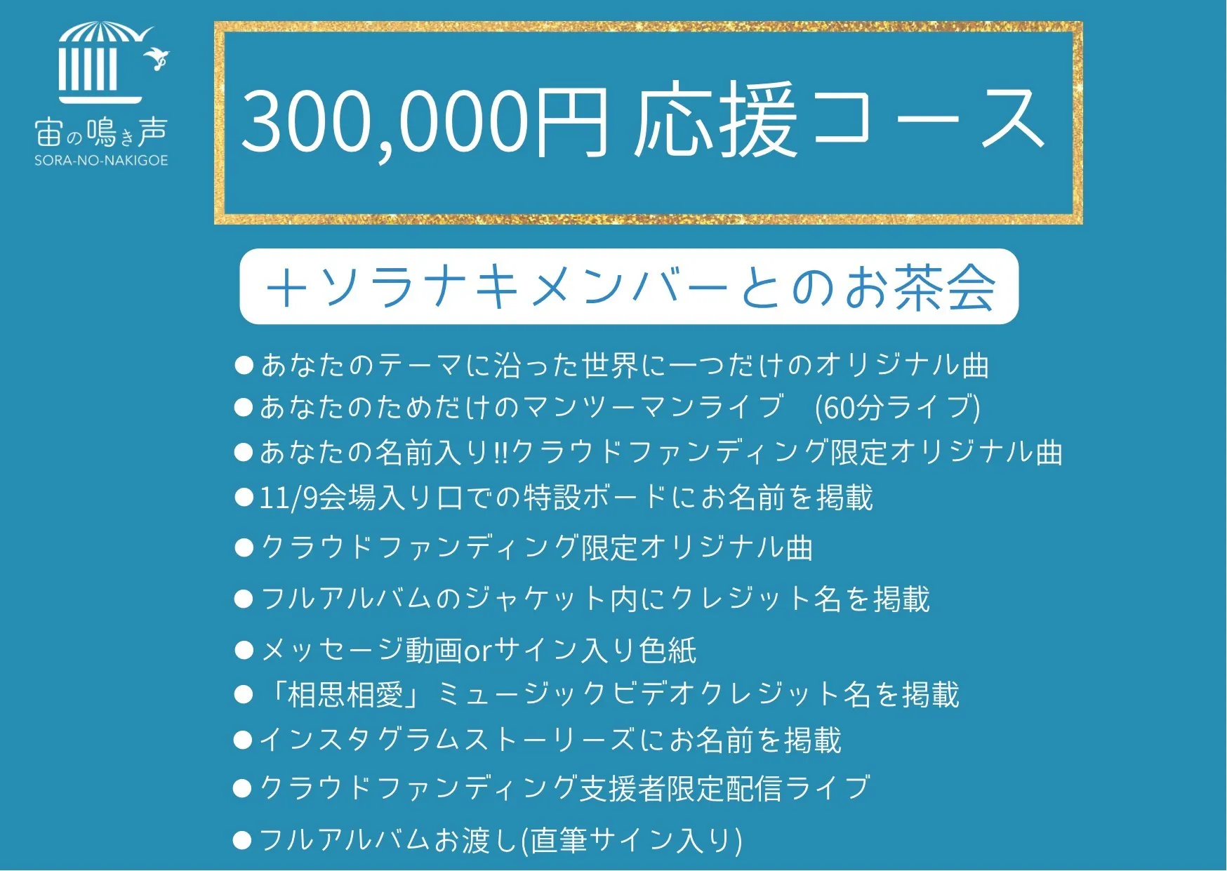 2024年1月より、クラウドファンディングオリジナル曲、あなただけのテーマオリジナル曲、マンツーマンライブ、お茶会の打ち合わせをした後に制作、実施。(打ち合わせはメールにて行います。) soranonakigoe@gmail.com