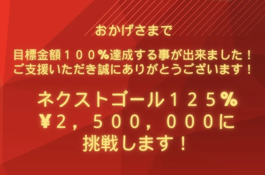 8/21(水)に目標の¥2,000,000 達成しました!!
