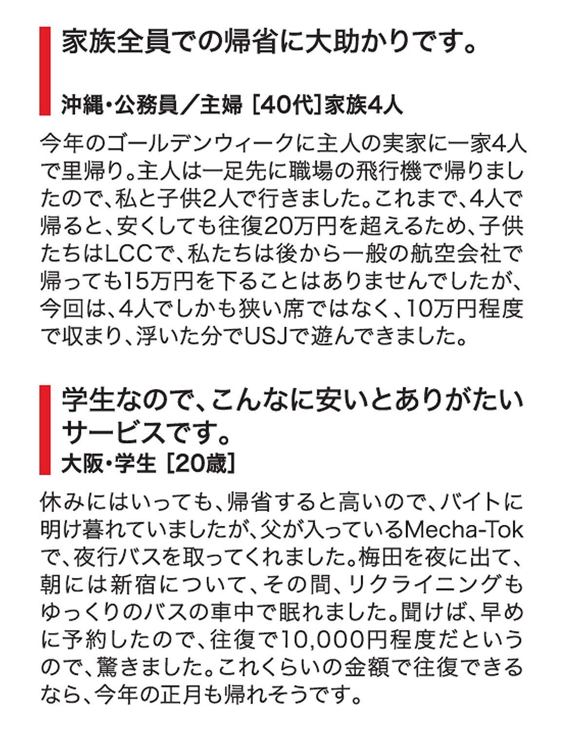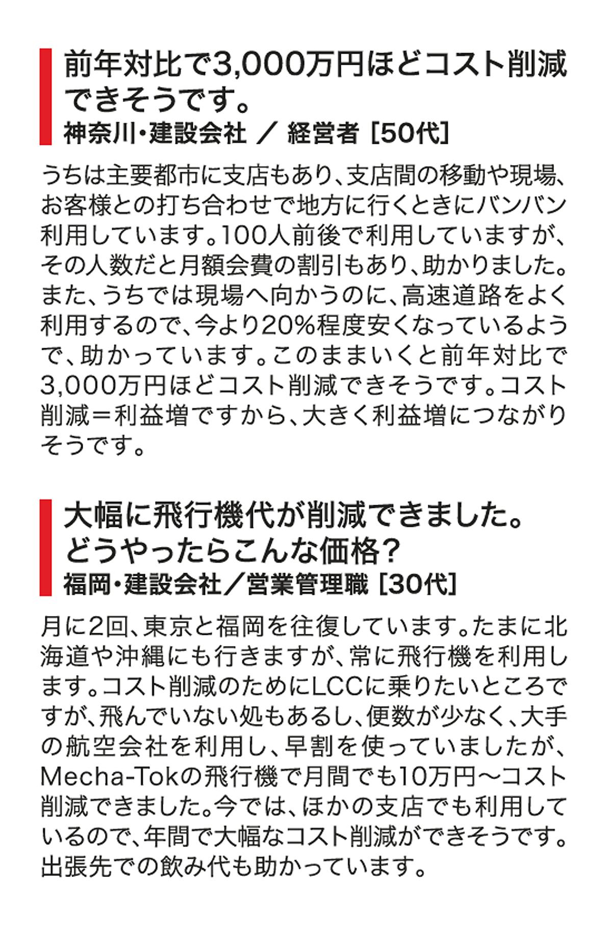 メチャトクをご利用いただいているお客様からの感想を紹介します。