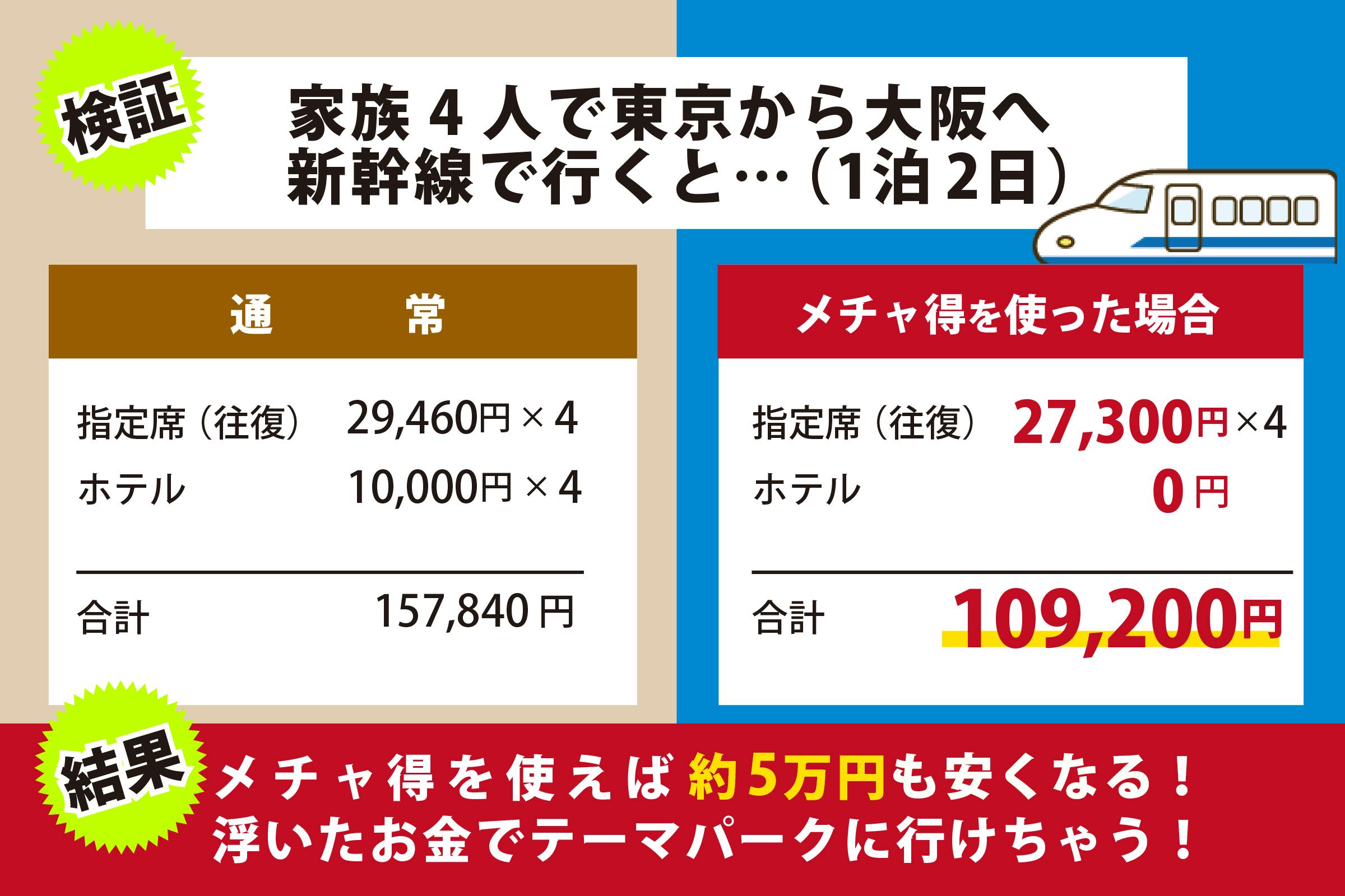 メチャトクなら、新幹線代が大幅に安くなる上に1泊分の宿泊代が無料!大幅に浮いたお金で、旅行の内容をより充実させられます。