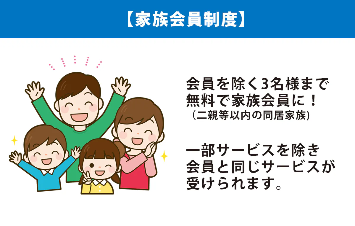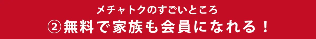 このように会員ご本人が1年に1回出張や旅行に行くだけでも年会費の元が取れるメチャトクですが、さらに同居しているご家族も無料で会員になれます。ぜひご登録ください。