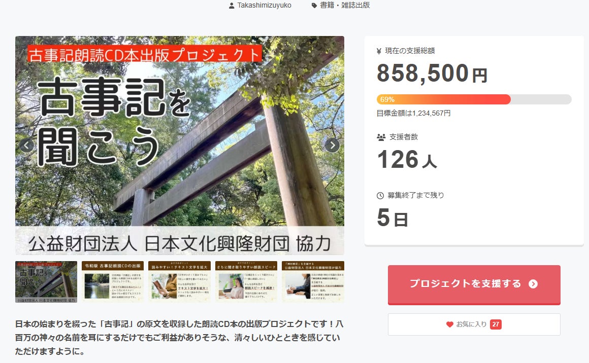 ご支援くださった皆様に感謝!本当に有難うございました。目標達成額には届きそうにありませんが、これだけ多くの方々に応援頂き光栄です!どうもありがとうございました(^^