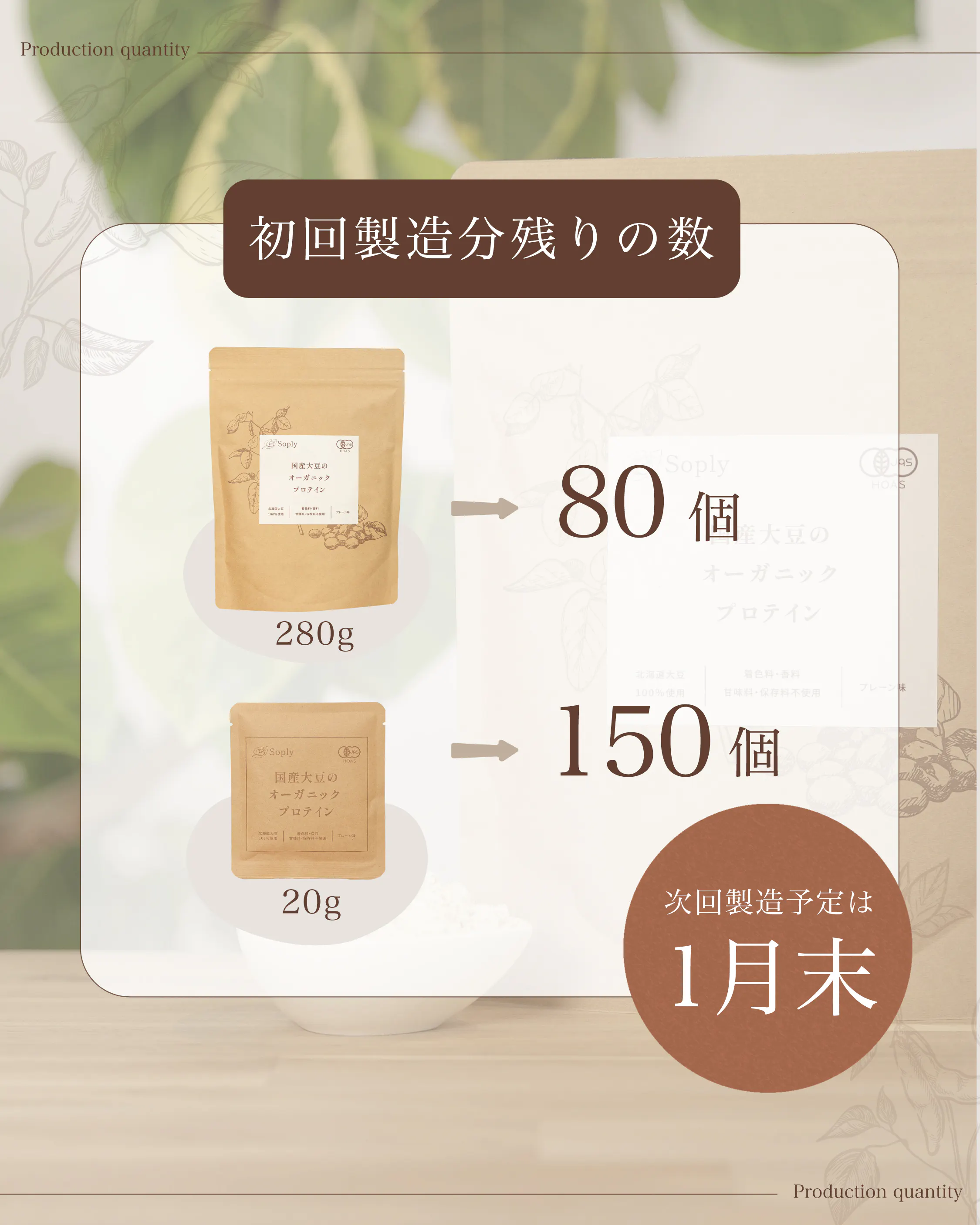 と、日々の食生活の中でSoplyを切らしたく無いというお声もいただいておりますので、今回の残数と次回の製造予定をお伝えさせていただきます。