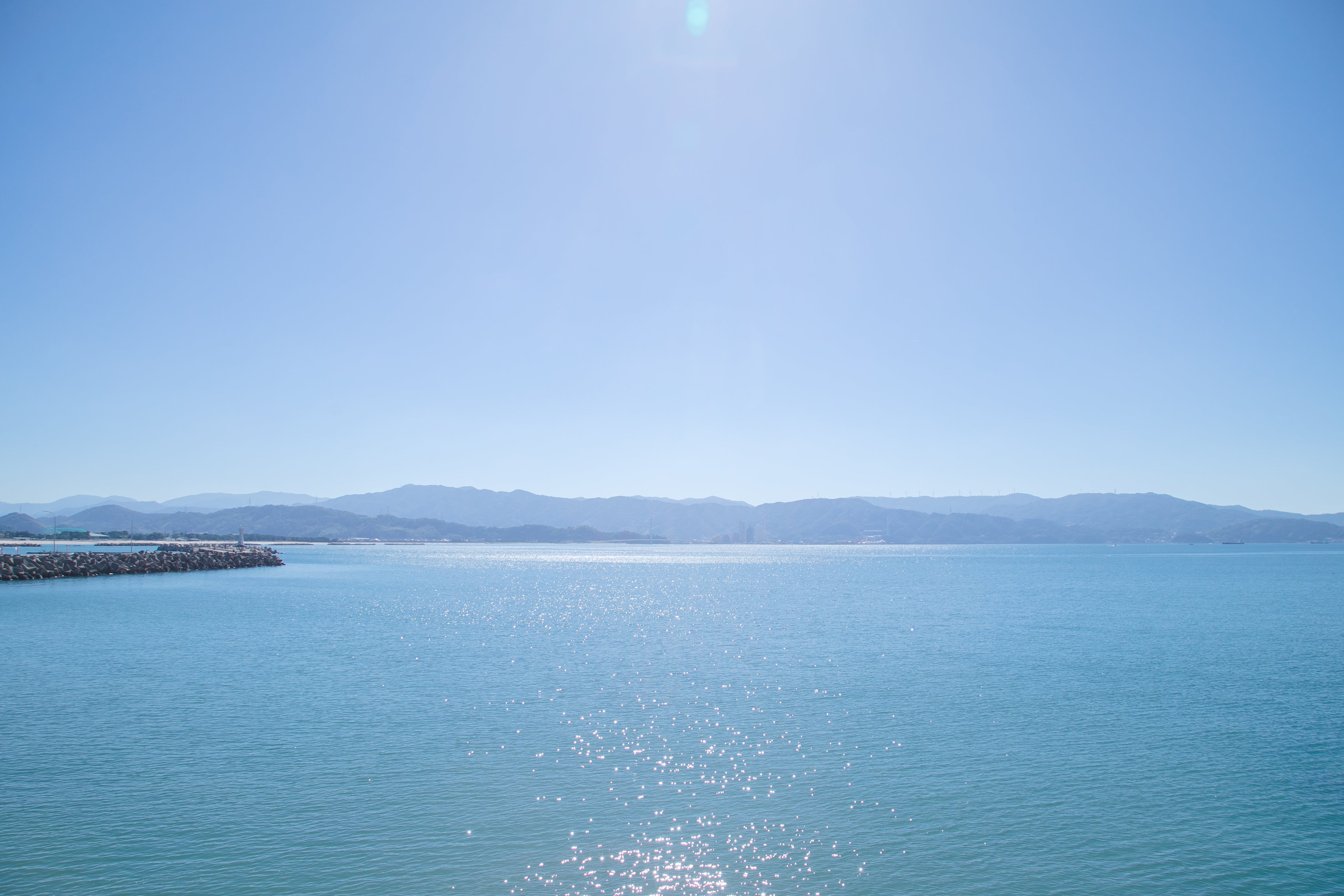 レストランからの眺めです。東向きに位置し、夕方には紀州の山々が赤く染まる景色もご覧いただけます。特に昼間の明るい時間から夕陽の赤く染まる時間、暗くなる時間と自然の景色の移り変わりは何とも言えない至福のひとときを感じます。