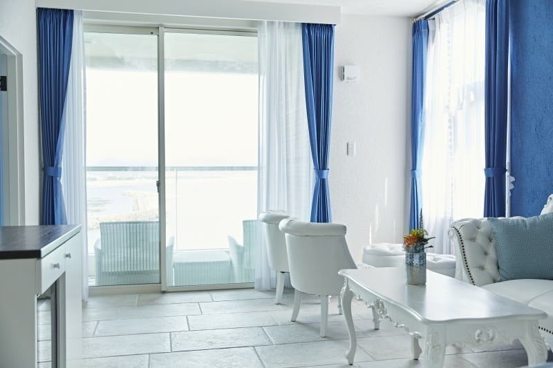 当館は全25室が海に面しており、全てオーシャンビューの客室となっております。そのうち16室のテラス付客室にはそれぞれ"露天風呂”、"ハンモックチェア”、"ソファ”などスローライフを楽しんでいただけるようご用意しております。"自然を楽しみ、自然とくつろぐ”を体感していただきたく、自然の光や波の音を感じ、至福の時間をお楽しみ下さい。