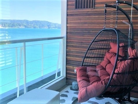 この画像はプライベートサウナを設置する予定の場所からの景色です。こんな眺めの中で味わうプライベートサウナは他にはありません。また、外気浴の際には波の音を聞きながらお寛ぎいただけます。
