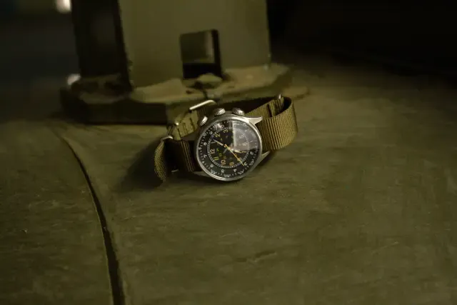 また、TYPE A-15には、飛行経過時間(Elapsed Time)を表示させることによってより飛行に必要な機能を搭載しました。戦闘機の機能向上により夜間や悪天候でも出航可能になったことから24時間表示と蓄光の必要性が出てきました。それら全ての要件を兼ね備えているのが"TYPE A-15 Elapsed Time Watch エラプス タイム"になります。まさにパイロットの為に作られた時計です。