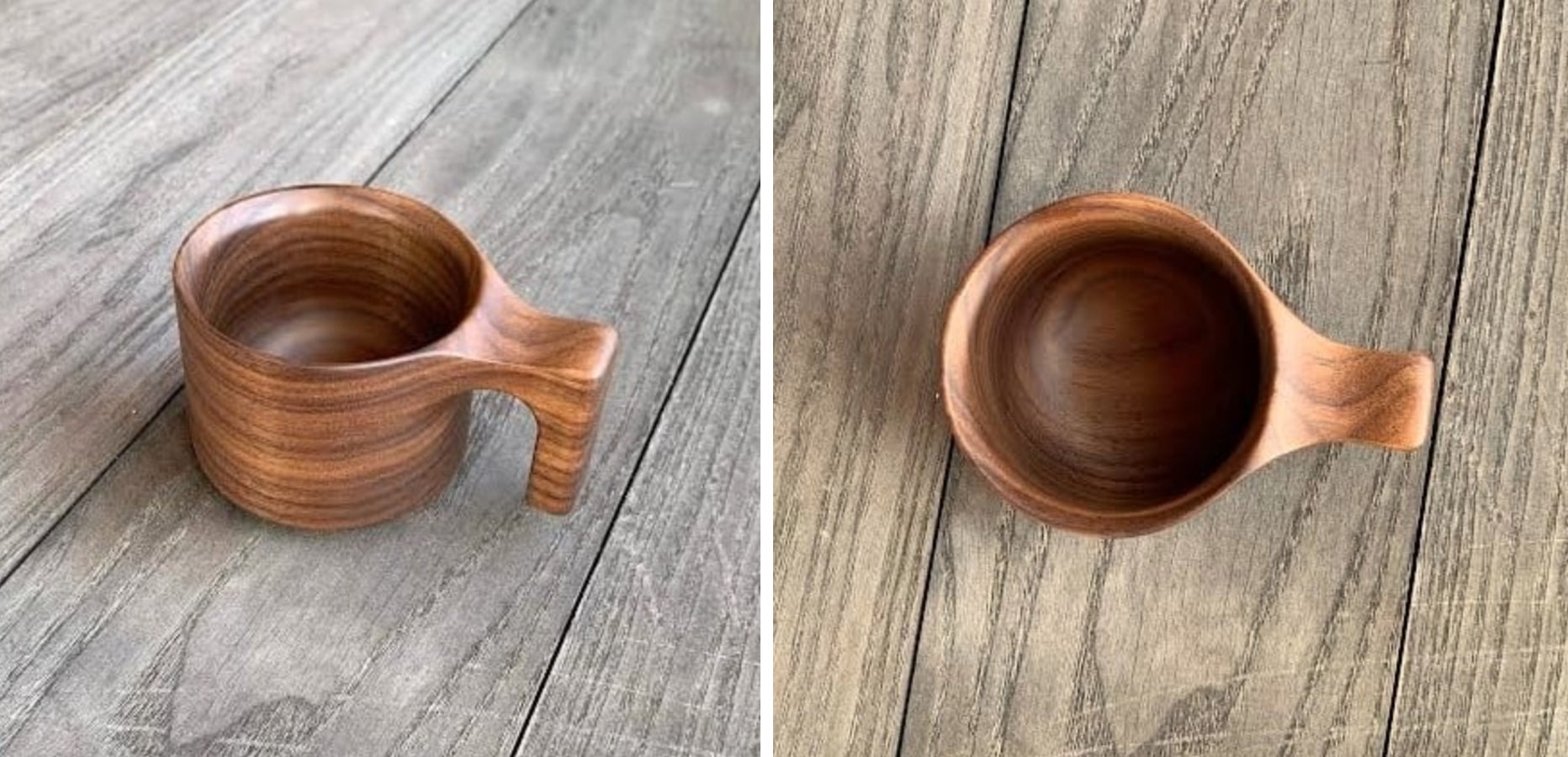 密度が高く美しいため木目と柔らかな光沢が特徴の高級素材、胡桃の木(ウォールナット)を使用した木製マグカップです。