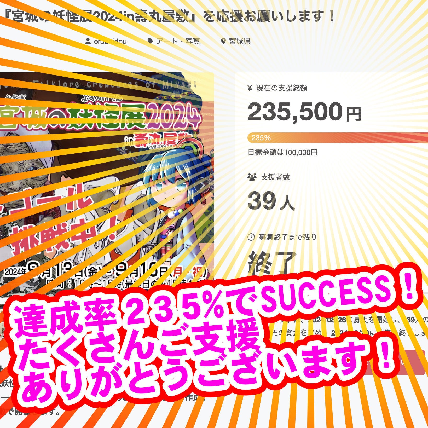 おかげさまでプロジェクは成功し、最終的に目標金額の235%を達成いたしました!