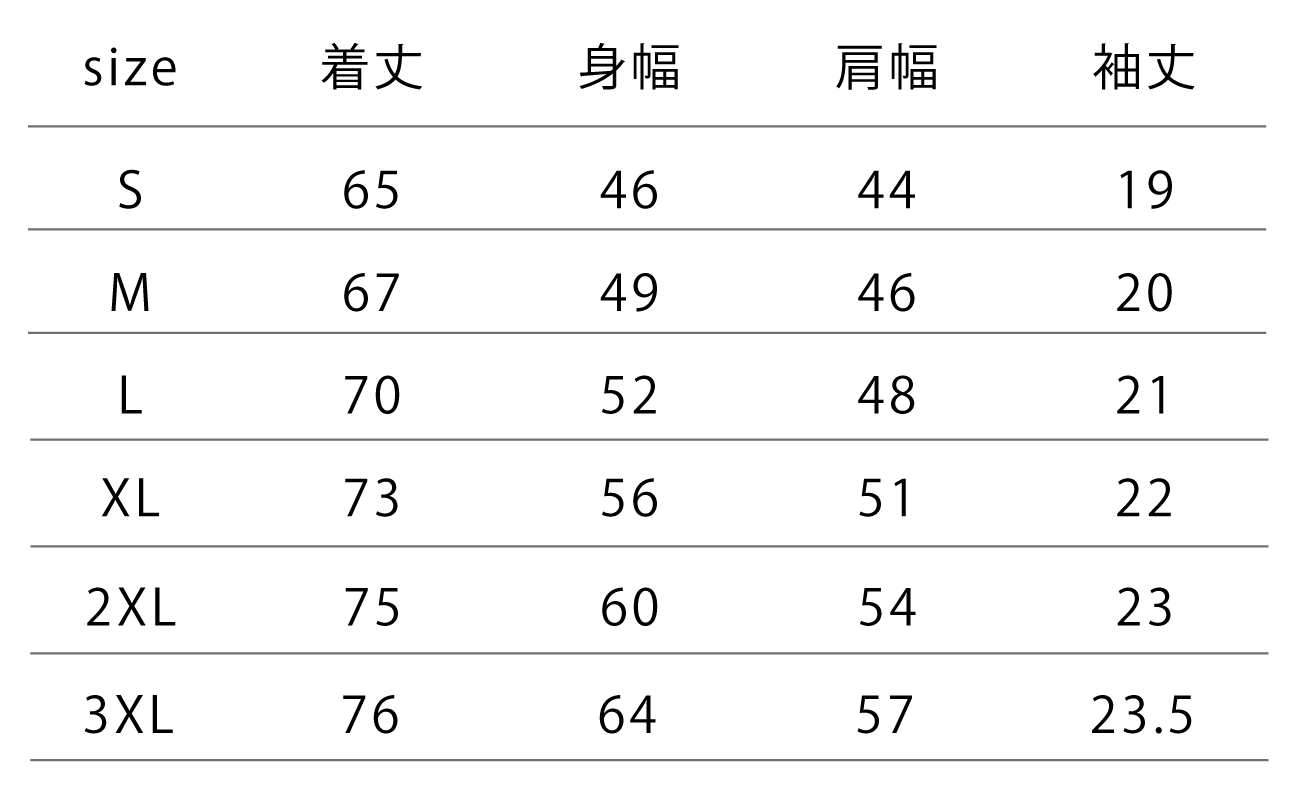 サイズ表をご覧いただき、お手持ちのTシャツとお比べいただくなど、確認の上ご注文をお願いいたします。受注生産につき何卒宜しくお願い申し上げます。